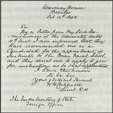 1892년 12월, 고종은 근대 해군 교육을 위해 영국 총영사에게 해군 교관 파견을 요청하고 1893년 3월 해군학교 설치령을 공표한다.