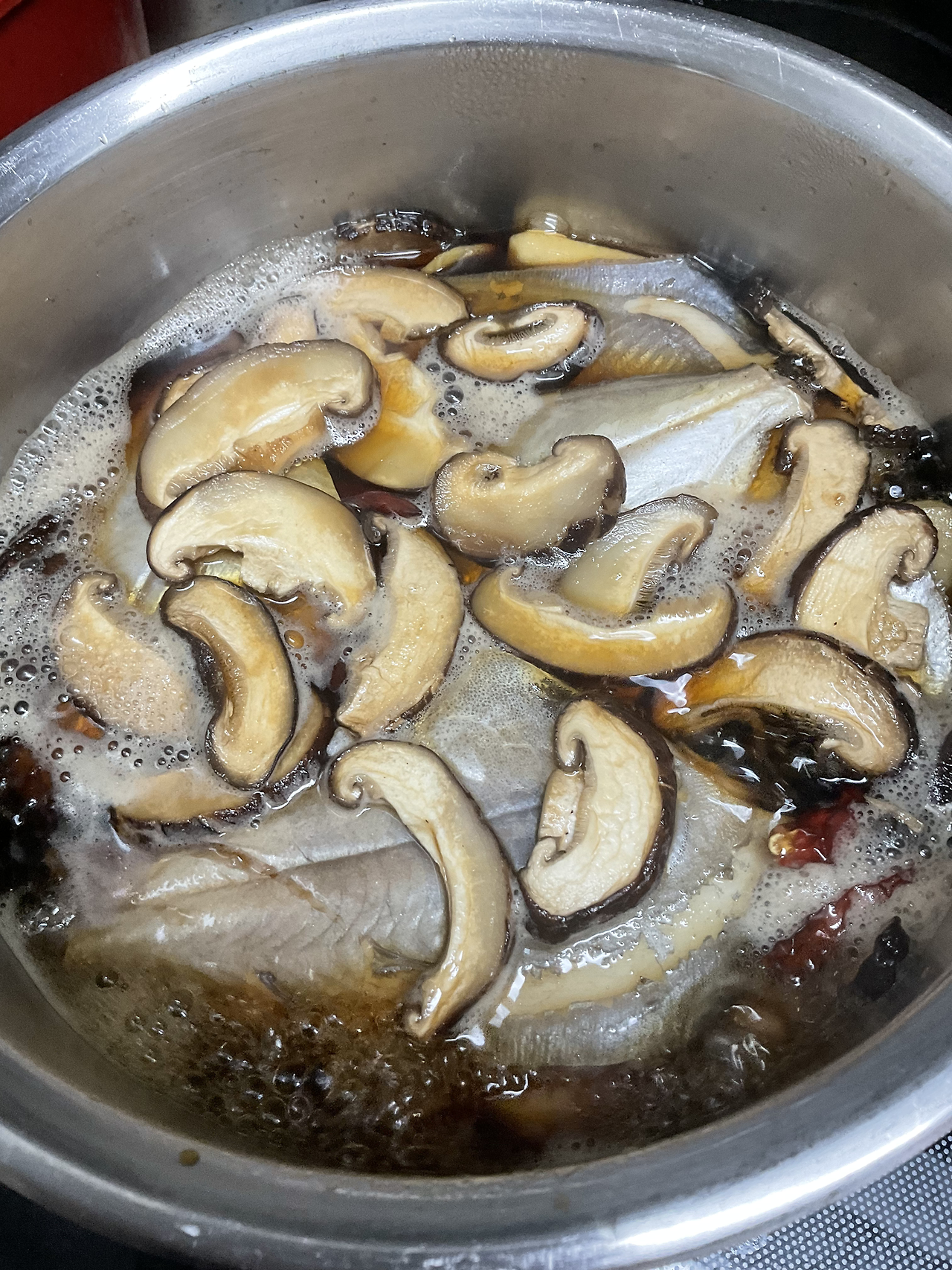생강, 베트남고추, 꽈리고추, 표고버섯, 당근 등을 넣습니다.