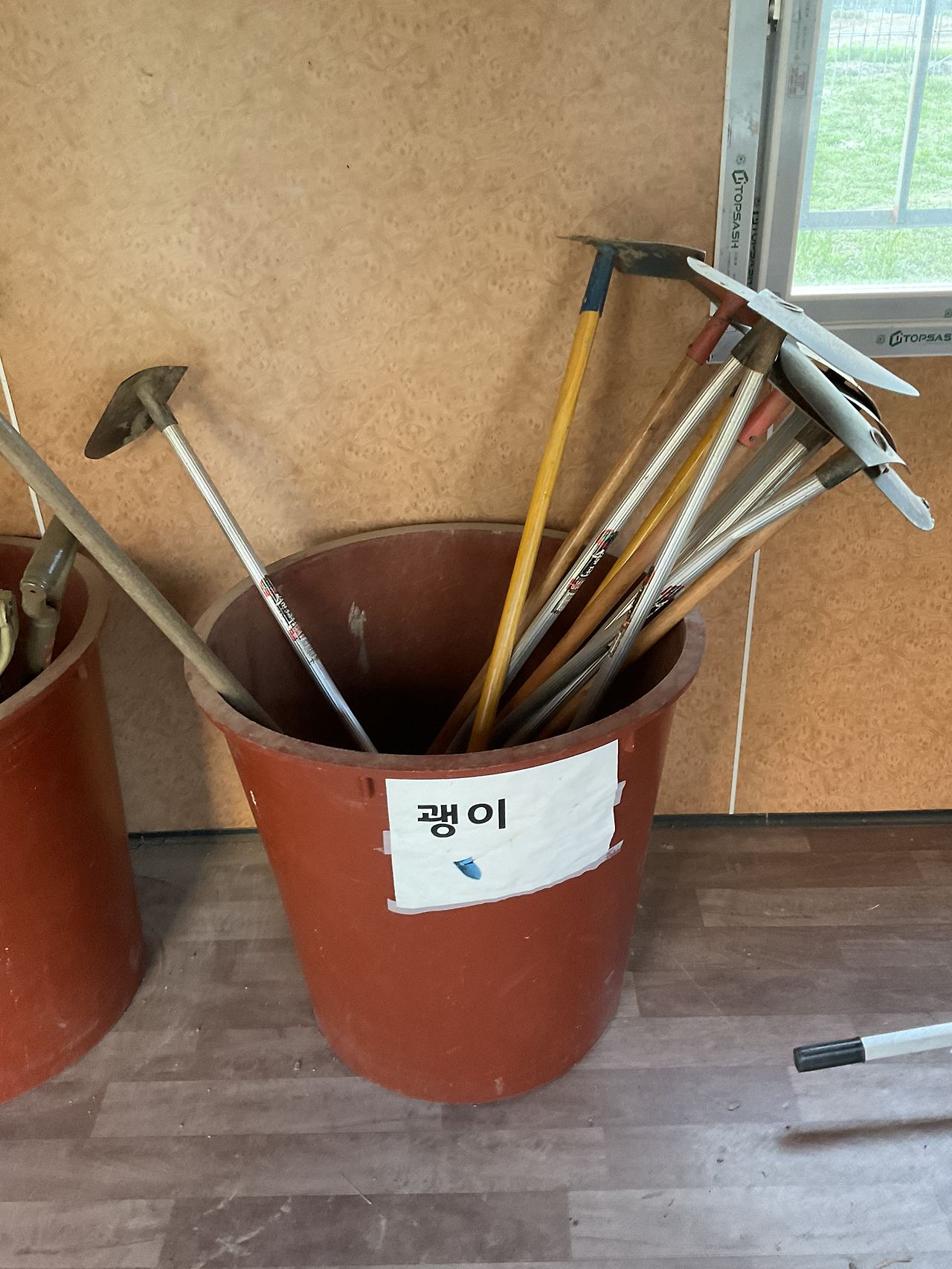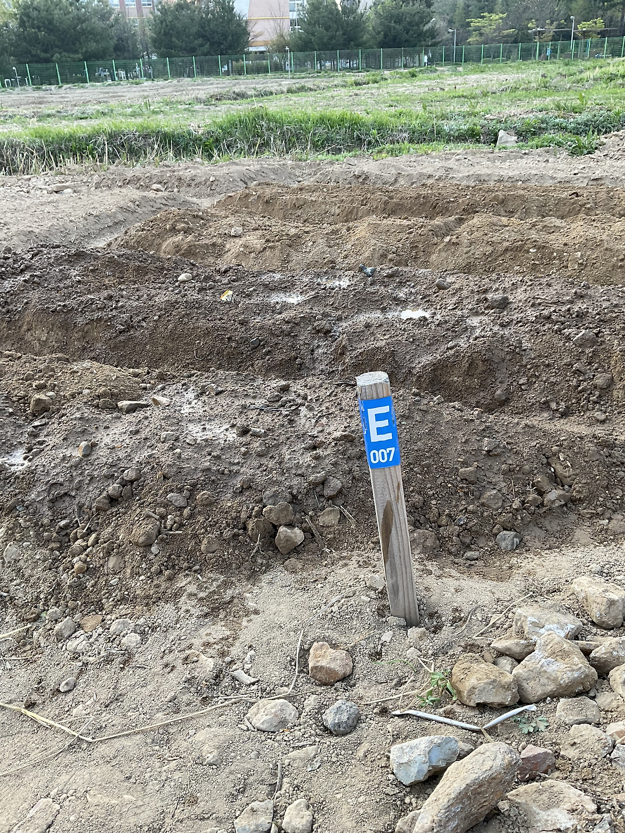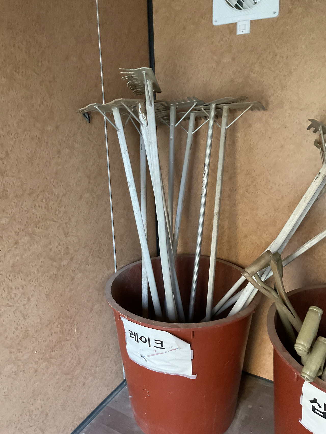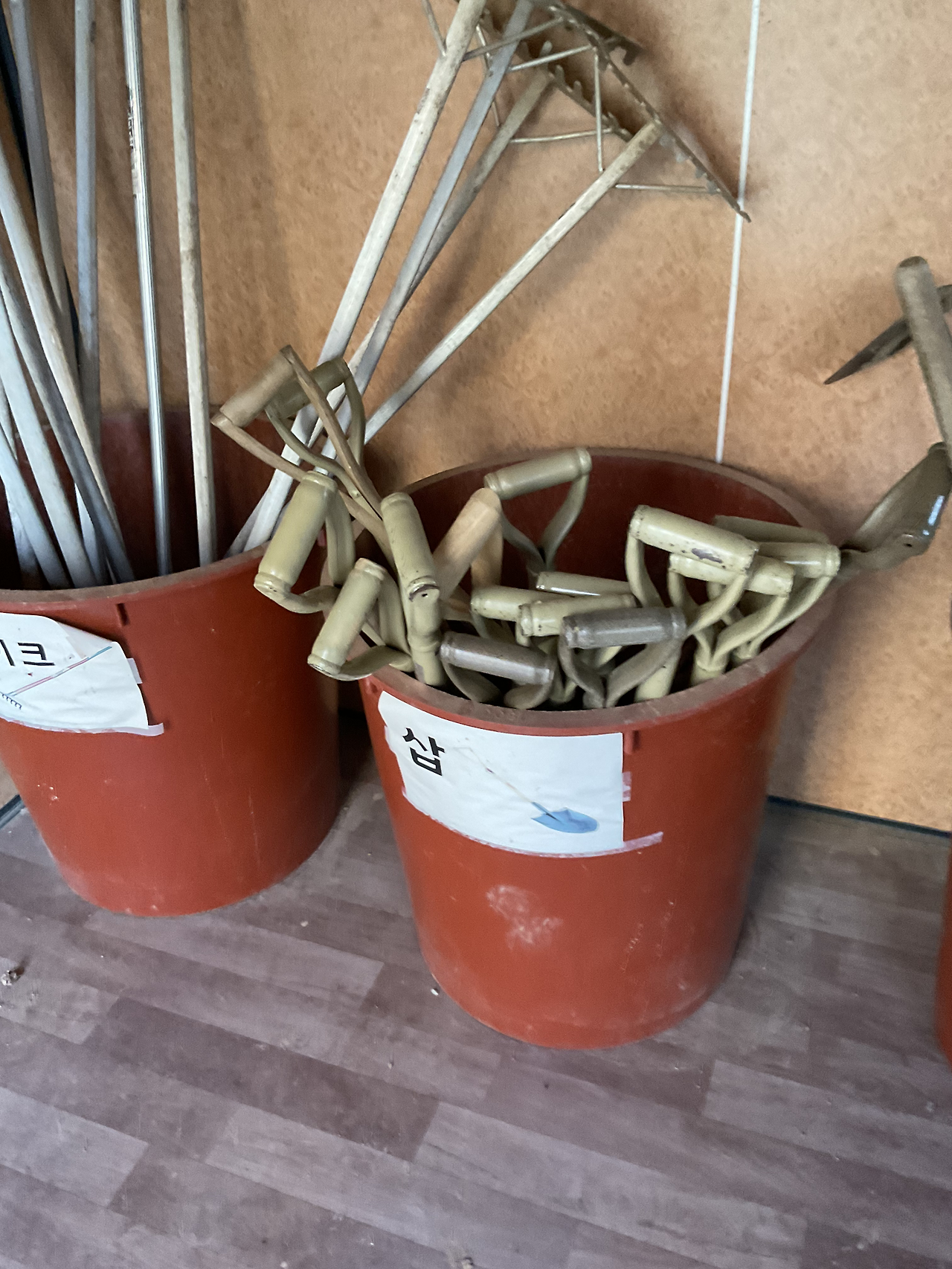 원두막 가깝고, 수도가 바로 팻말과 붙어 있다. 만세 호미 제외한 농기구와 조리도 공동 농기구 컨테이너에 비치되어 있다. 빠른 분들은 벌써 상추, 얼가리 모종을 심었더라.