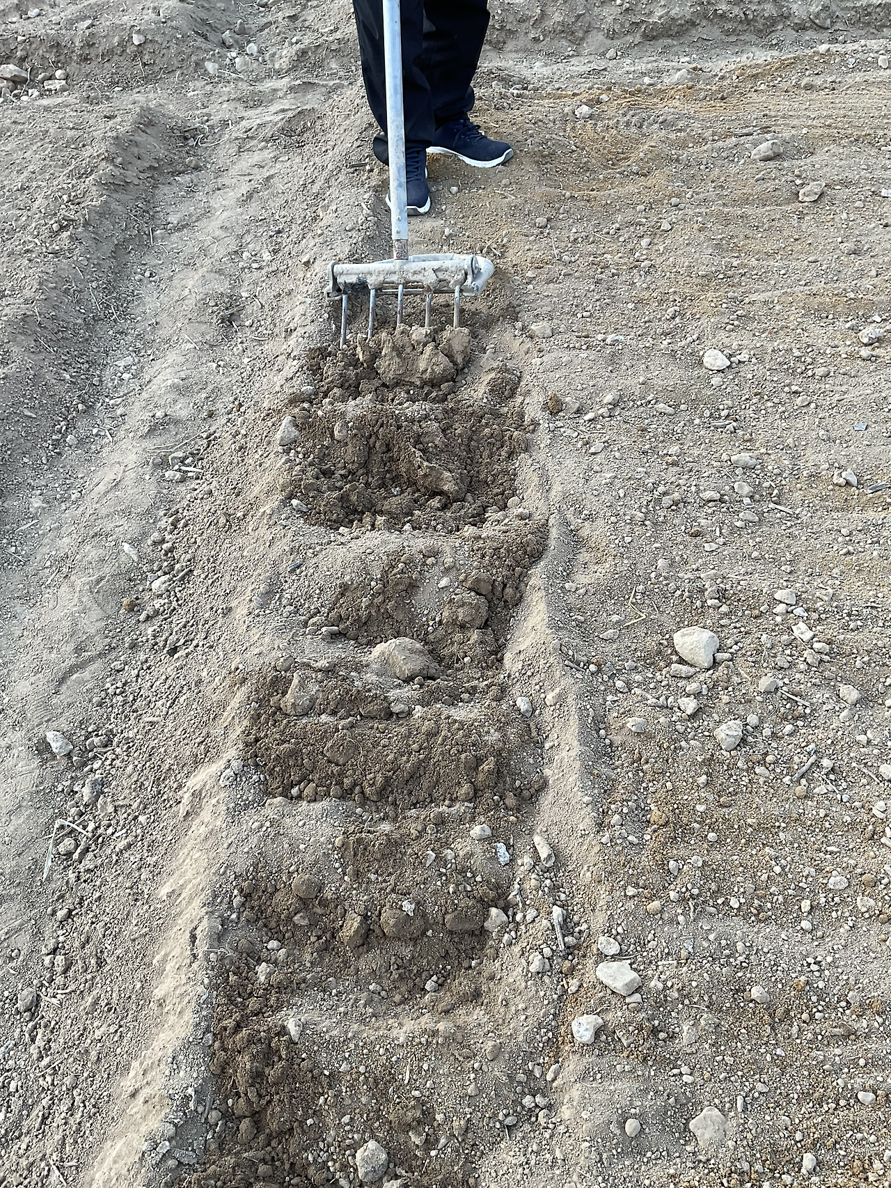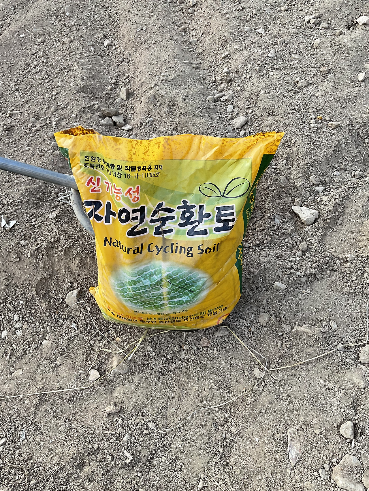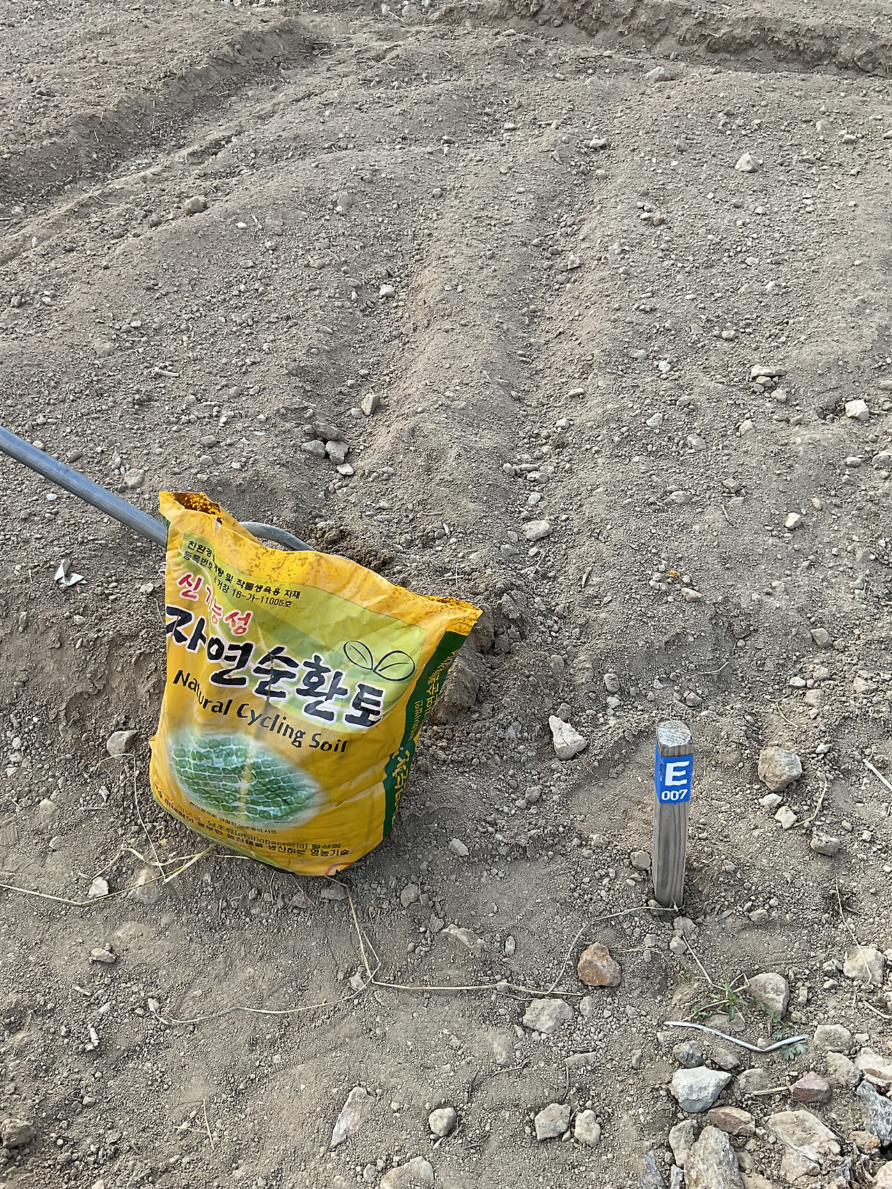 유기농 순환토와 신박한 농기구로 텃밭에 순환토 넣고, 땅 뒤집고, 고랑 만들고, 물 조금 뿌렸다.