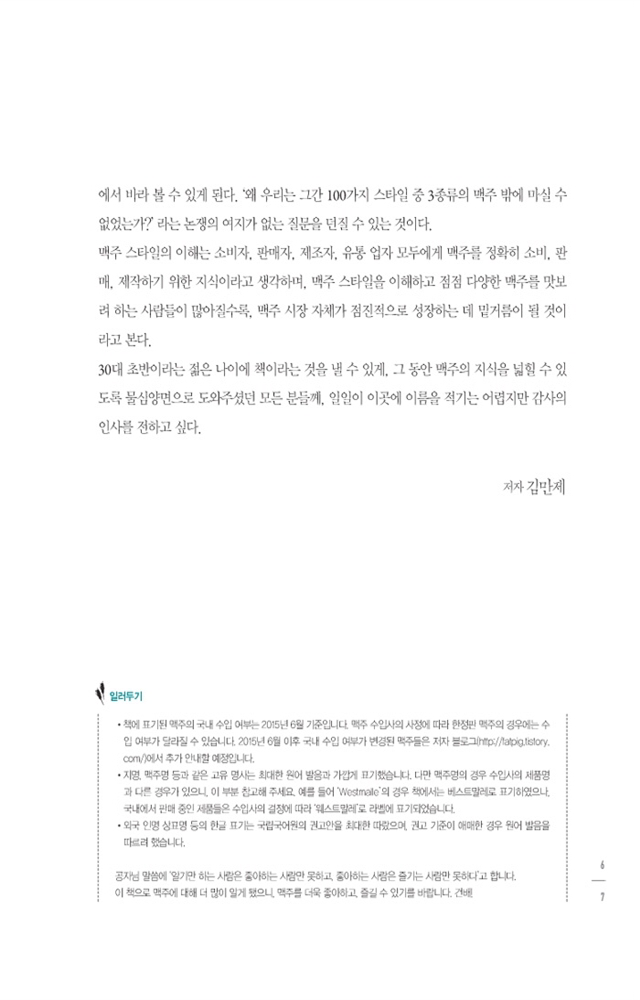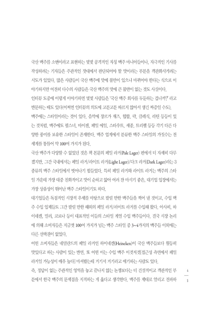 내용도 구성도 깔끔하다. 구구절절 늘어지는 천편일률 짜집기 글이 아니다. 맥주 사전으로 곁에 두고 자주 책을 열어 지긋이 생각하며 읽기로 한다.