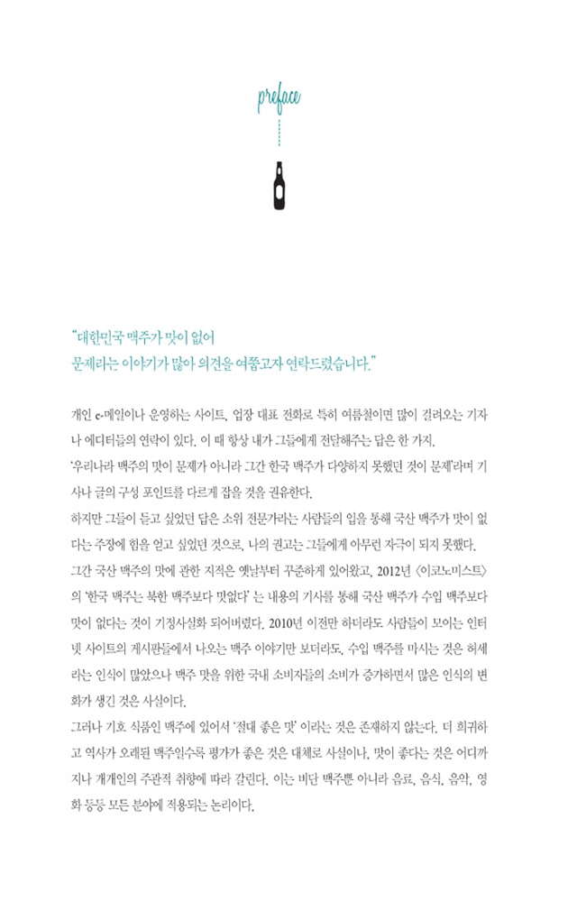 책 소개 글은 막상 책을 읽기 시작하자 너무 싱거운 소개였다. 오히려 프롤로그에서 소개하는 책 소개는 흥미진진했다. 맥주를 평생 한 병쯤 마셔봤다면 이 책의 프롤로그 정도는 읽어 두어야 하지 싶다.
