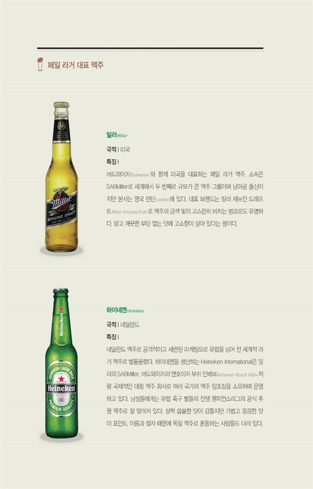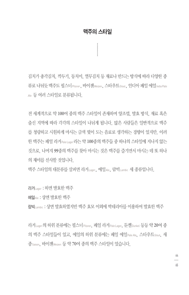 우리는 맥주에 대해 얼마나 알고 있는가? 얼마나 다양한 맥주를 마셔보았는가? 맥주는 카스와 맥스, 하이트만 알던, 도수 높은 맥주를 마시려면 ‘소맥’을 말아야 한다는 당신을 위해, 맥주의 모든 것에 대해 담은 [THE BEER : 맥주 스타일 사전]이 출간되었다.
