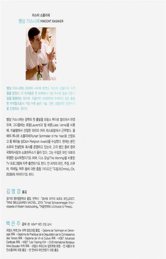 출판사 대표님이신 유경종 선생님께서 추천하신 이유는 저자때문이었다. 표지에 촌스럽게 디자인된, 그러나 DK 스타일이 분명한 저자의 사진은 와인의 우아함과는 거리가 있어 보인다. 저자 소개를 보자.