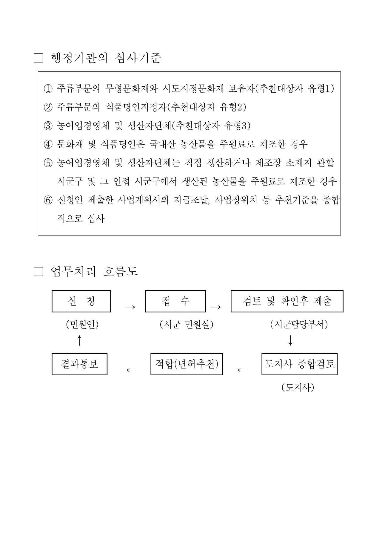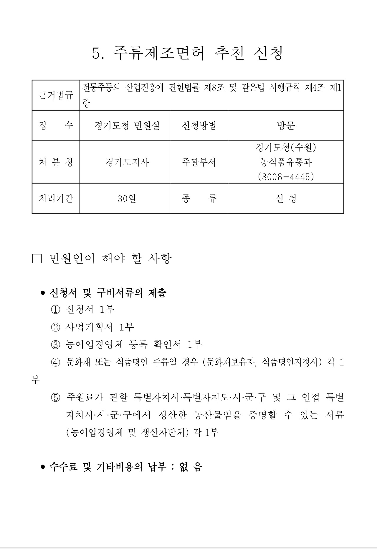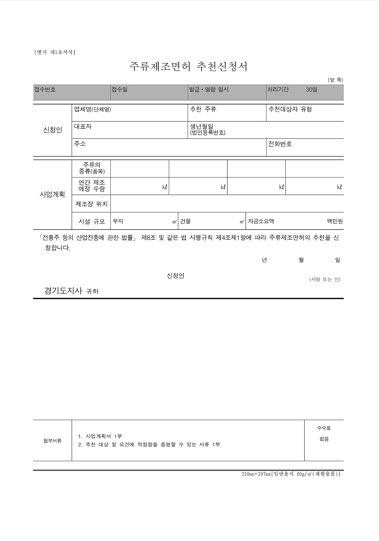 문화재 또는 식품명인 주류일 경우 (문화재보유자, 식품명인지정서) 각 1부