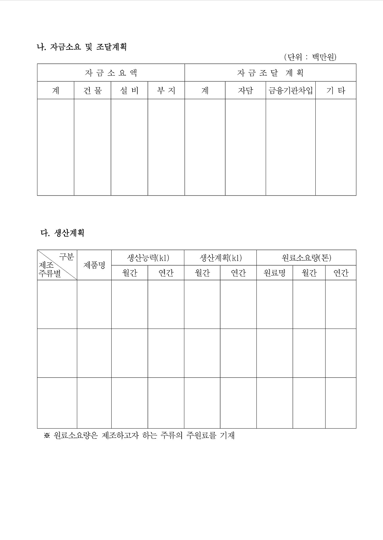 제조 방법 신청서
