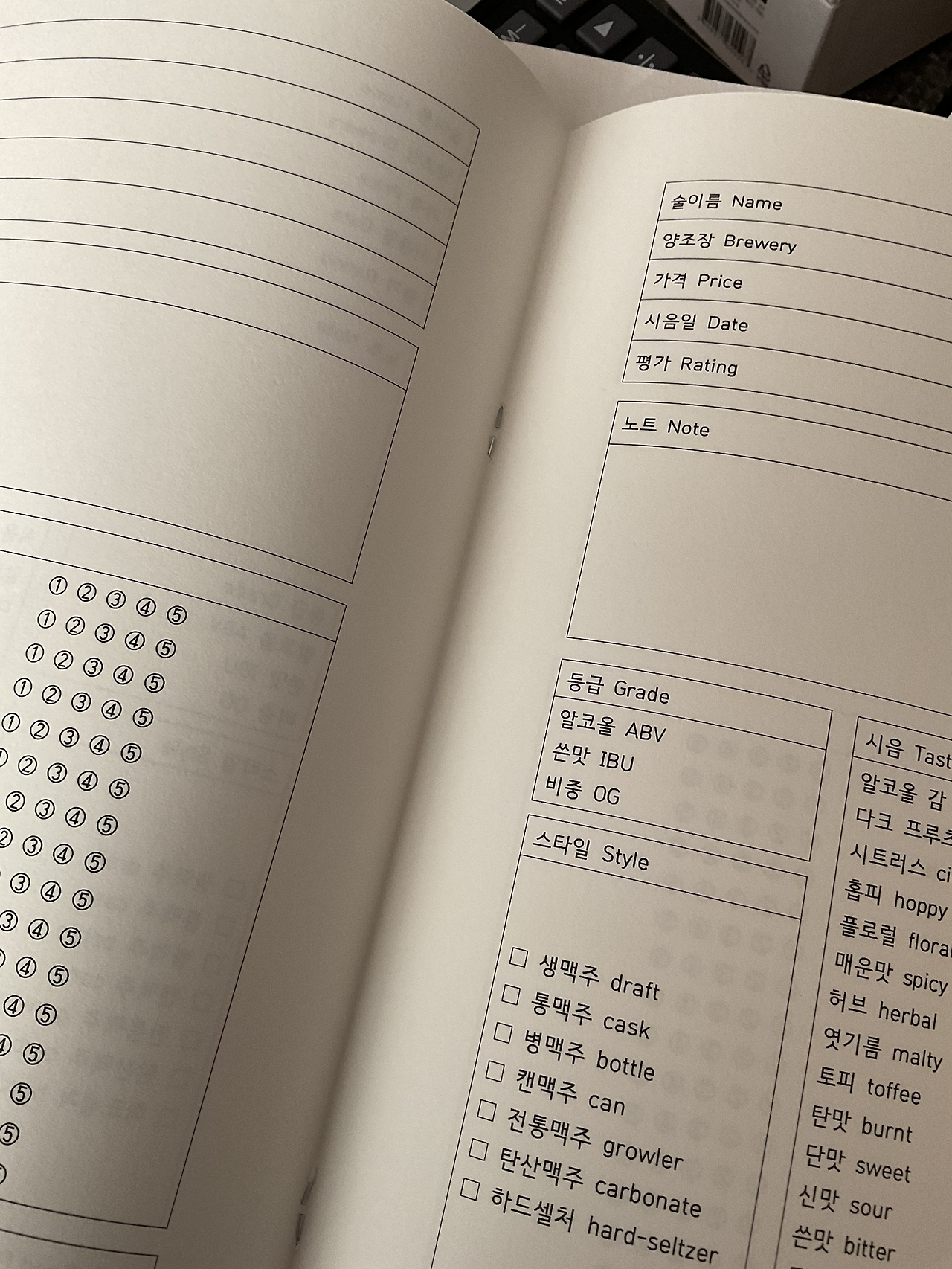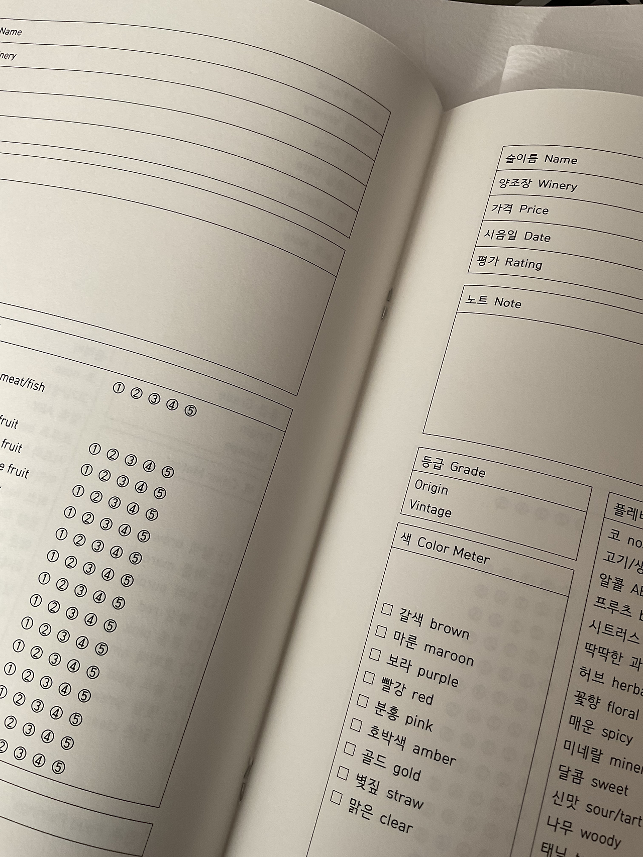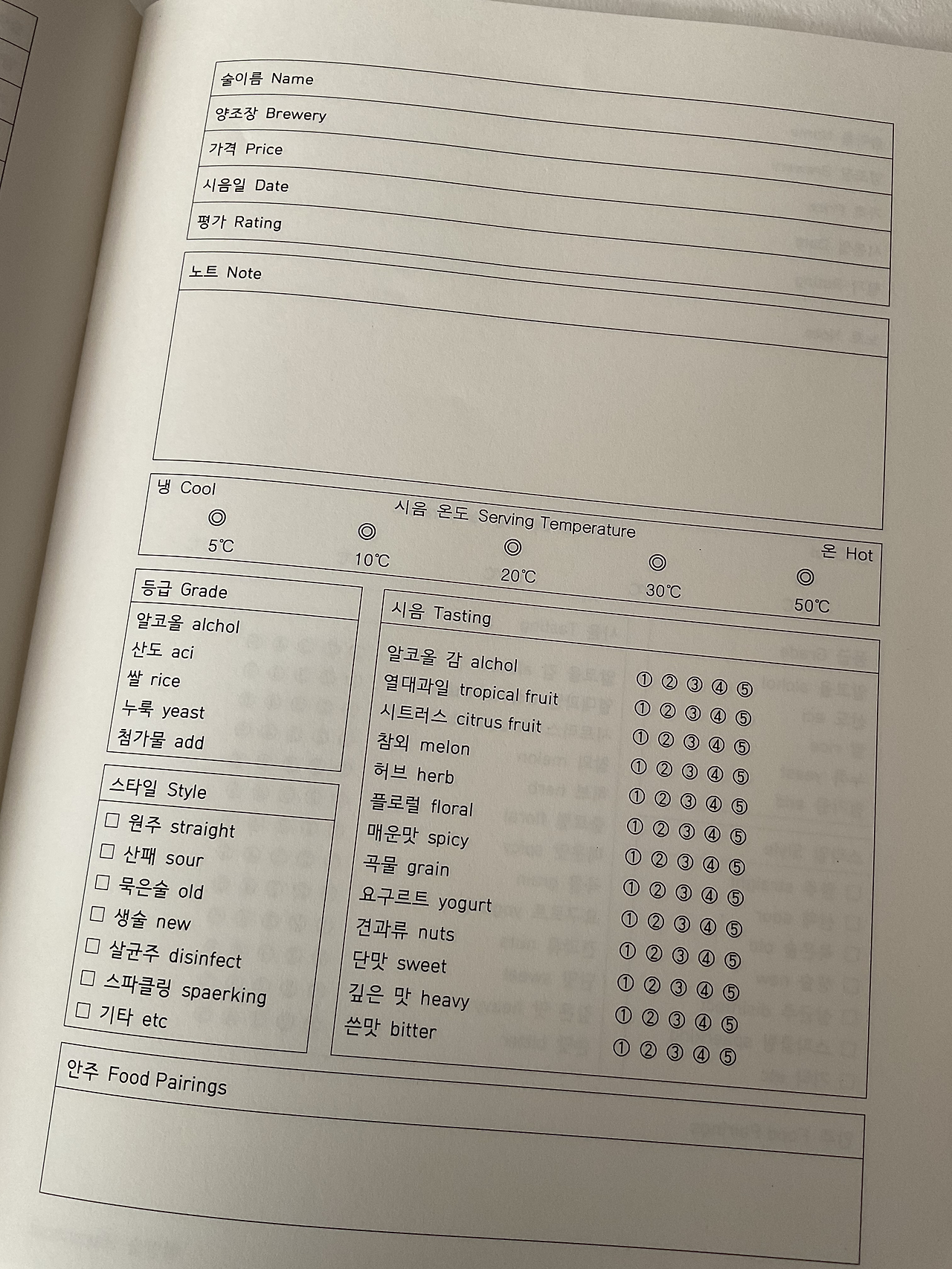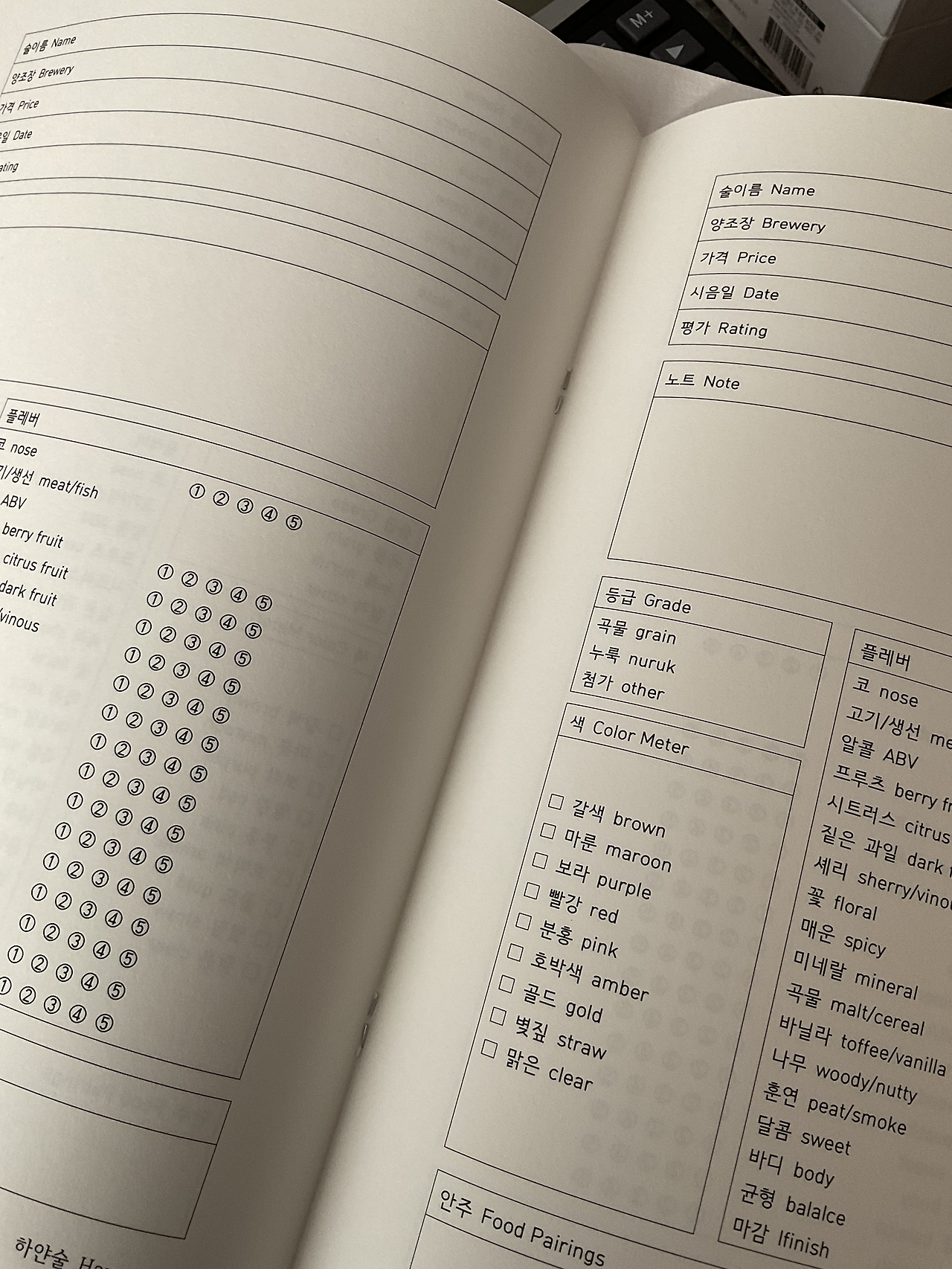 막걸리, 맥주, 소주(리큐르 포함), 와인 테이스팅 북을 만들었다.