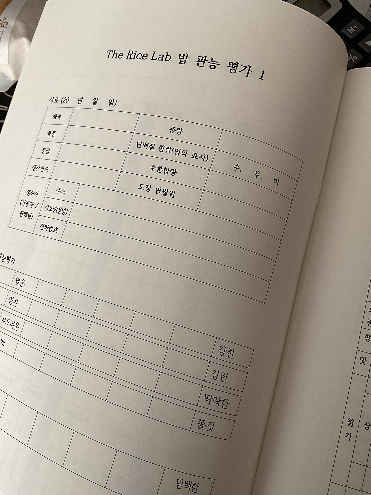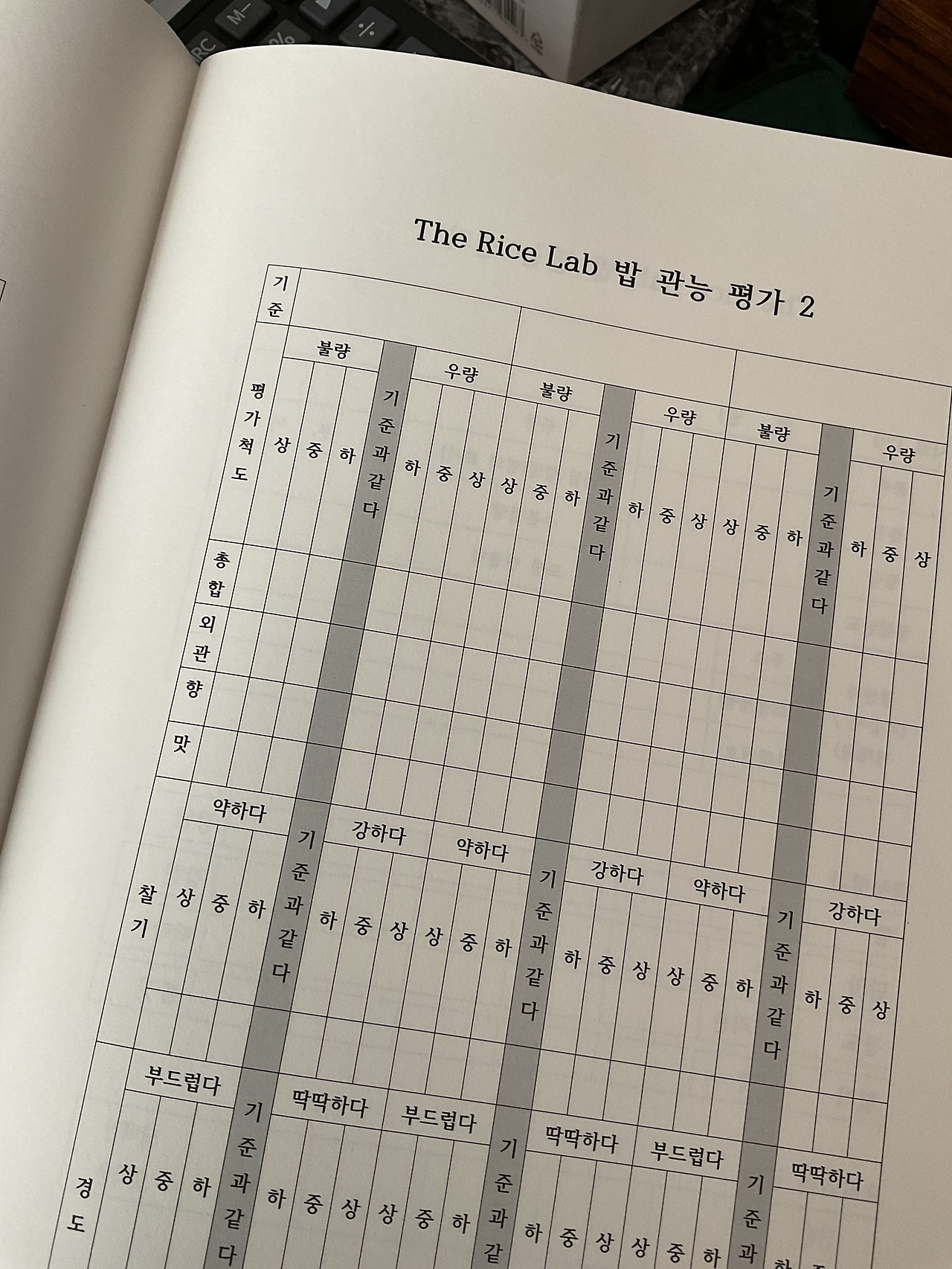 밥소믈리에 & The Rice Lab 필요로 밥 관능평가 북을 만들었다.