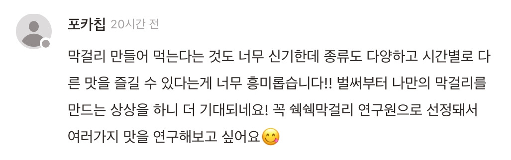 창의력 무한대의 젊은이 커뮤니티인 중앙일보 지글지글에서 “하얀술 쉑쉑막걸리 파우더”를 선택하고 추천합니다. 중앙일보 지글지글 미뢰연구소가 “하얀술 쉑쉑막걸리 파우더“ 챌린지 연구원을 모집합니다.