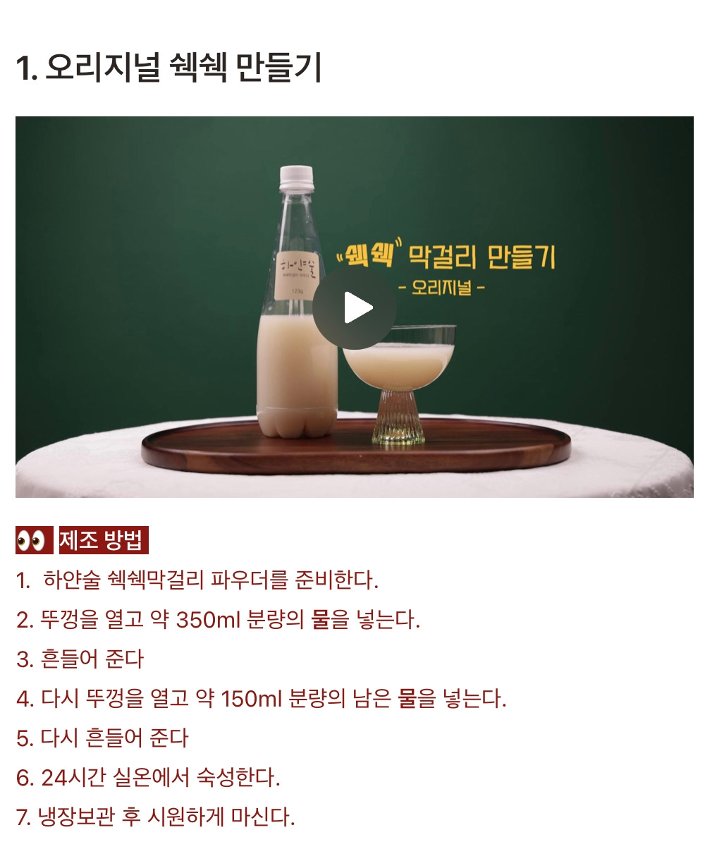 1. 하얀술 쉑쉑막걸리 파우더를 준비한다.