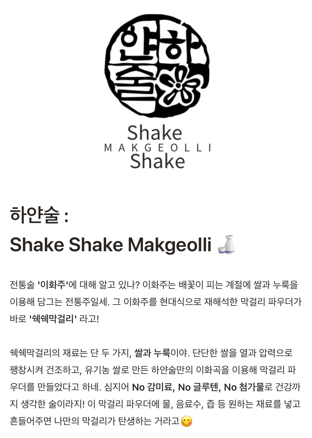 하얀술 쉑쉑막걸리 파우더