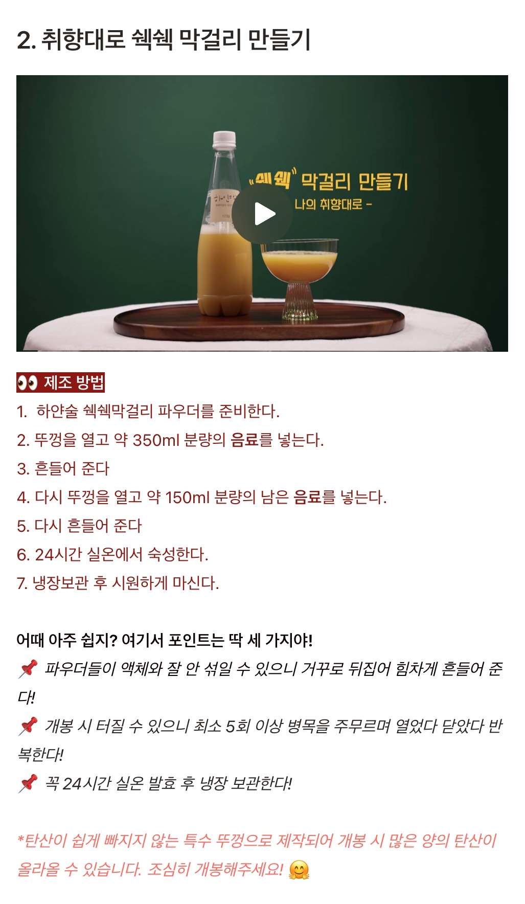 6. 가끔 뚜껑을 열어 탄산을 배출한다.