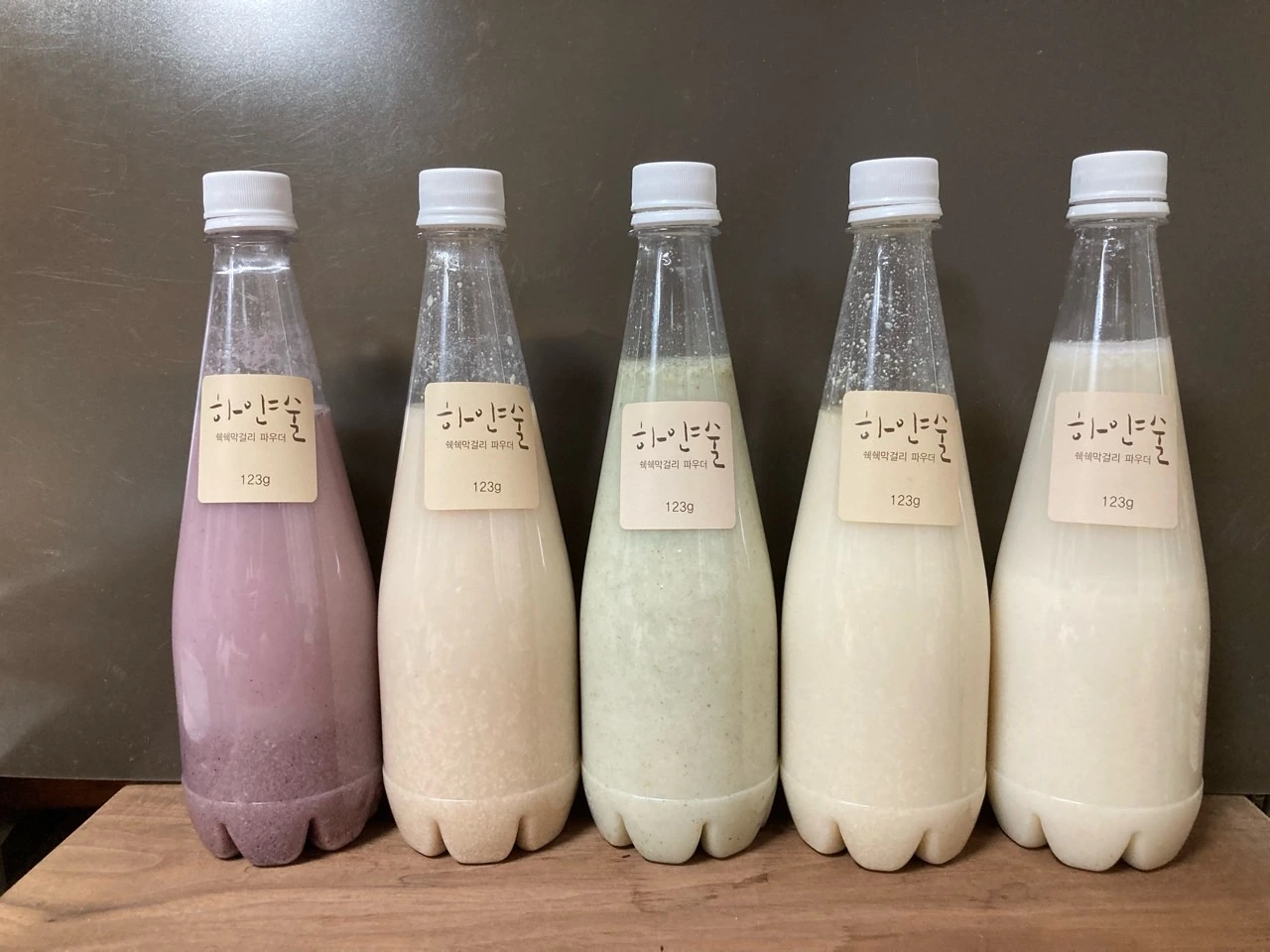 제주도 백도라지를 가공하되 사포닌을 함유하게 가공한 도라지 쉑쉑막걸리 파우더. 하얀술이 만들면 맛있습니다.