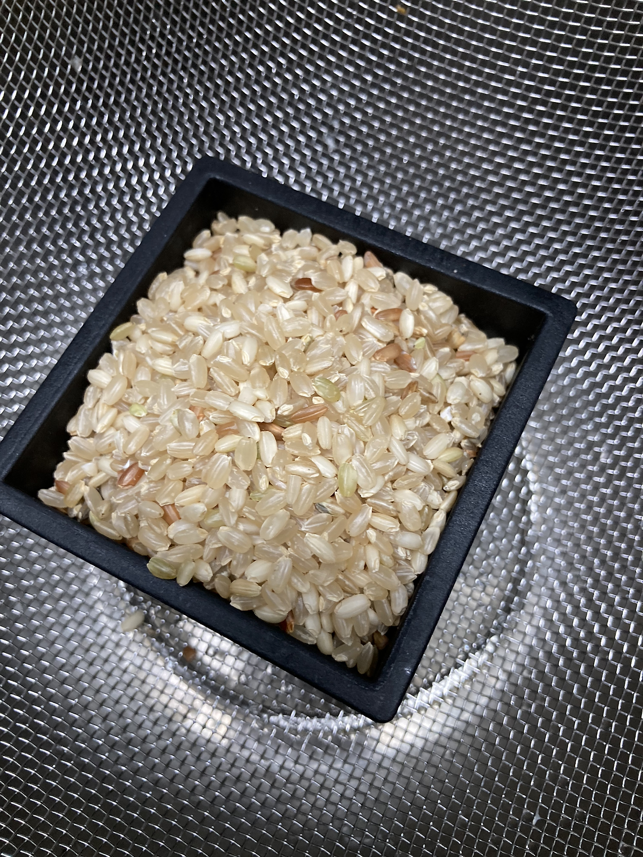 현미밥은 발뮤다 더고항 현미 코스에서 90분간 밥을 합니다. 발뮤다 더고항 현미밥은 톡톡 터지는 식감이 좋습니다.