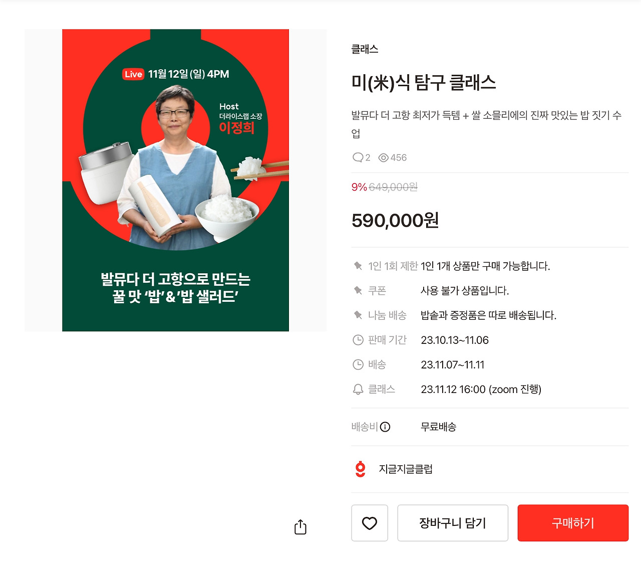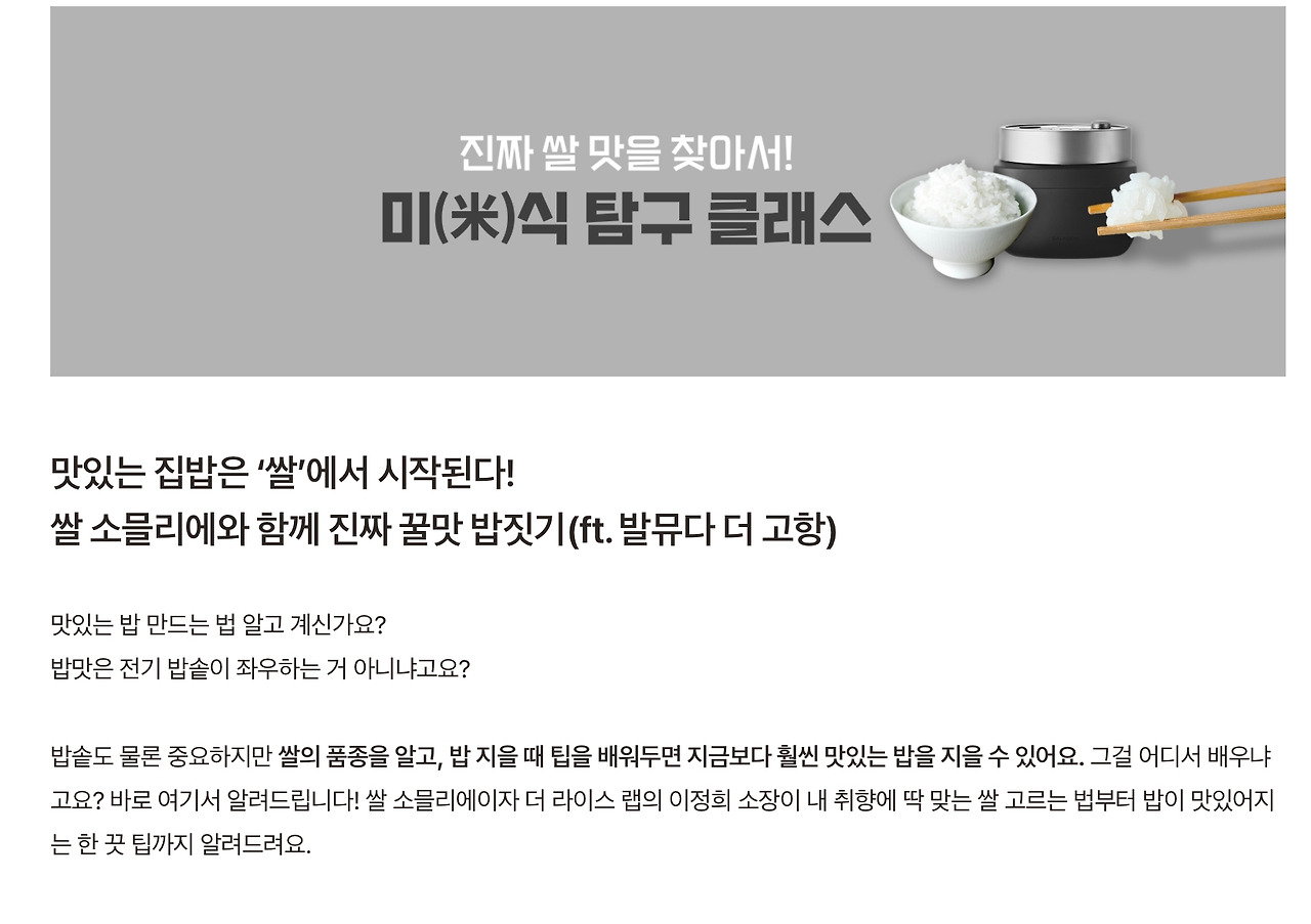 11월 12일 16시에는 ZOOM 으로 쌀 씻는 법부터 맛있는 밥짓기, 맛있는 밥먹기 등의 강좌도 진행됩니다.