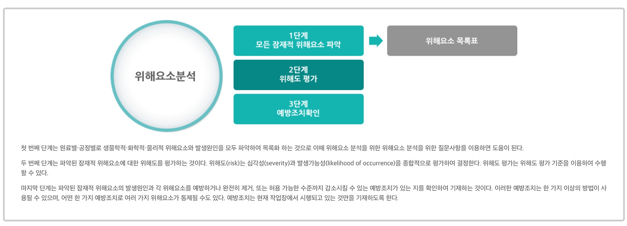위해요소 분석은 해당식품 및 업소와 관련된 모든 다양한 기술적·과학적 전문자료를 필요로 하므로 상당히 어렵고 시간이 많이 걸리지만, 정확한 위해분석을 실시하지 못하면 효과적인 HACCP 계획을 수립 할 수 없기 때문에 철저히 수행되어야 하는 중요한 과정이다.