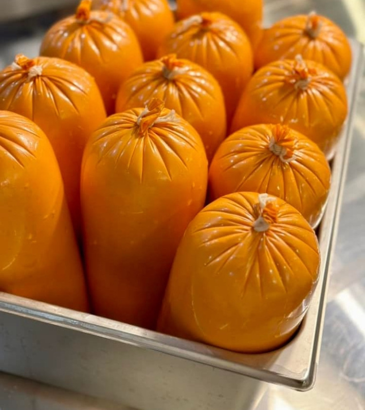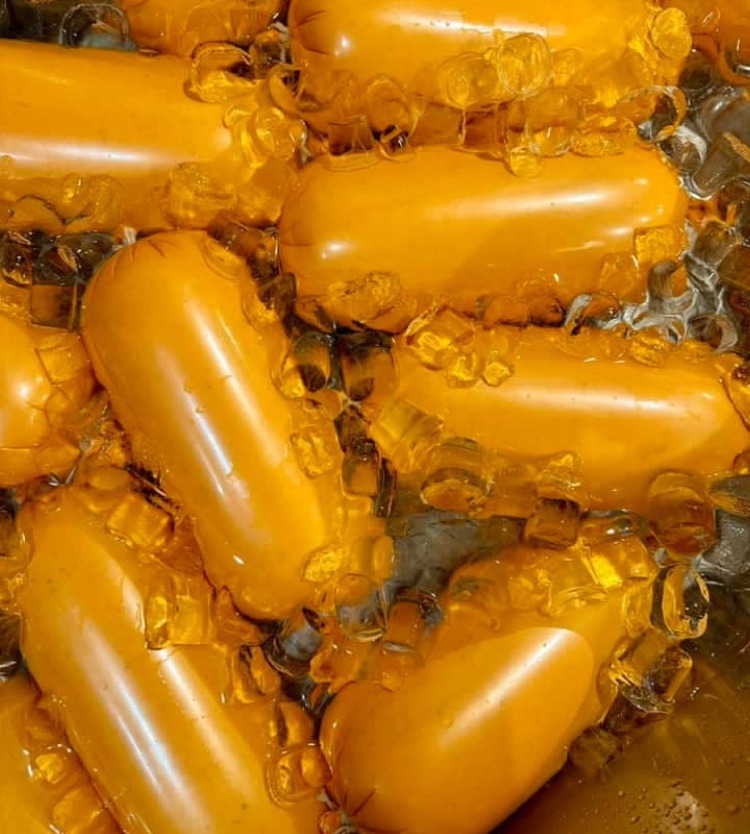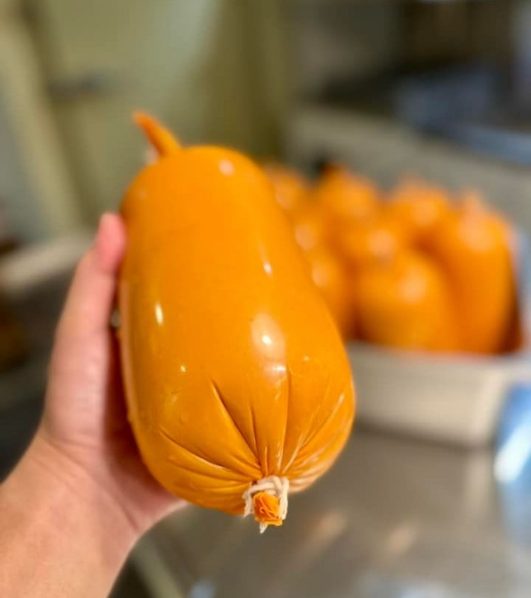 비어슁켄은 육괴(고깃덩어리)를 먼저 따로 염지해서 고운 반죽과 함께 버무려 만듭니다. 씹히는 것을 선호하시는 분들이 좋아하십니다.