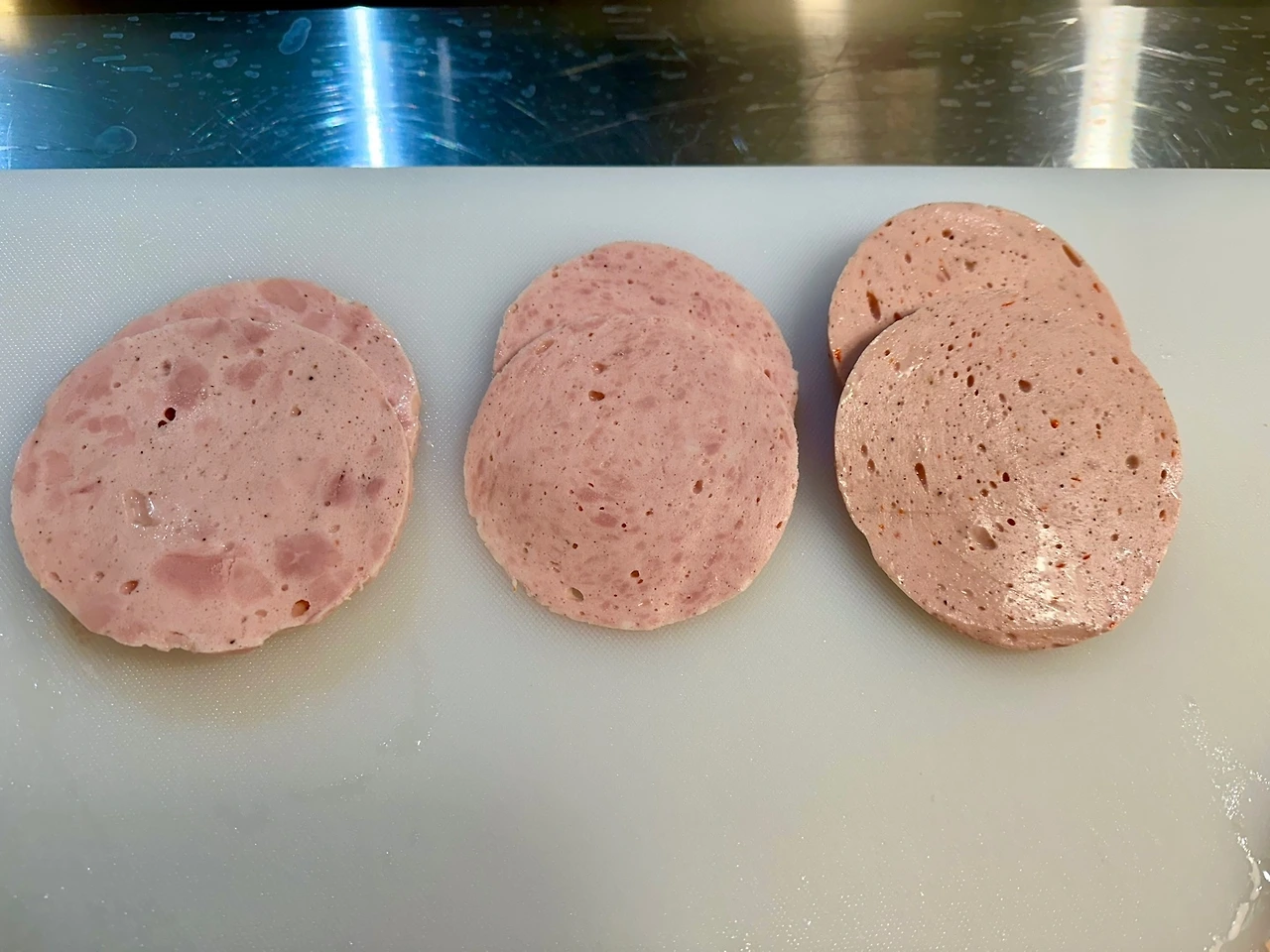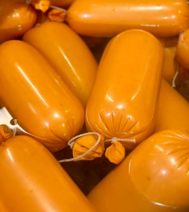 리오나(제일 오른쪽)는 유화형(에멀전)소시지인데요. 고운 반죽을 채워 만든 것이라서 다른 것보다 부드러운 식감입니다. 올리브와 파프리카를 넣었습니다.