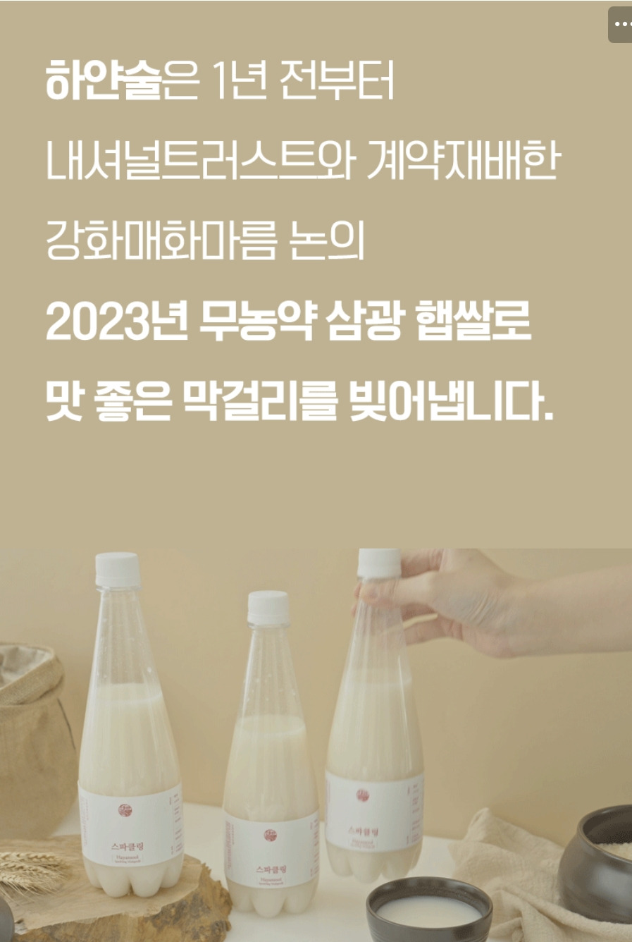 멸종위기 매화마름 논습지 군락지에서 공존공생하는 강화매화마름쌀로 하얀술이 빚은 스파클링 막걸리!!!