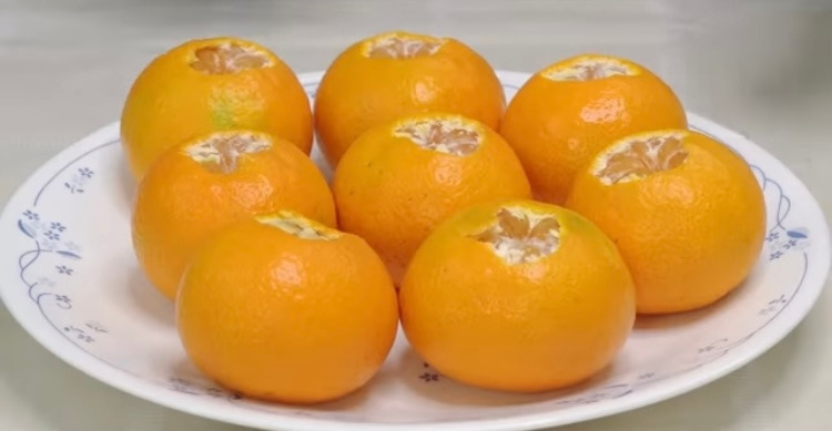 2. Remove the top of the tangerine peel and cook in the microwave (1000w) for 1 minute and 30 seconds.