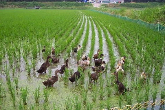 또한 최근에는 일부 농가에서 모내기 후, 울타리를 한 논에 오리 새끼를 넣어 새끼가 벼 사이를 헤엄 쳐 다니며 잡초와 벌레를 먹고 동시에 배설물이 비료가 되어, 더욱 커진 오리는 고기로 출하하는 제초제를 사용하지 않는 오리 농법도 이루어지고 있다. 대부분의 유기농법 농사는 오리농법으로 대표된다. 오리농법, 우렁이농법 등의 제초 방법은 유기농법으로 잘 알려져 있다.