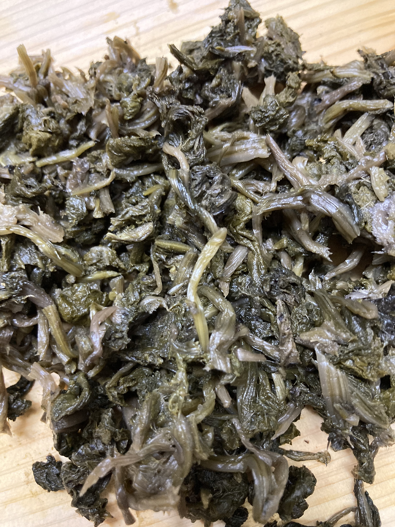 생곤드레나물을 먹어본 경험이 없어서 비교는 불가합니다. 나물 향은 그리 강하지 않습니다. 색은 묵나물같은데 이취, 이향 없이 순한 느낌입니다. 줄기의 질긴 듯한 식감도 전혀 문제되지 않았습니다. 참기름이나 들기름 넣어 고소한 향을 보태면 좋겠다 싶습니다만 저는 올리브유와 쿠엔즈버캇 생참기름만 사용하다 보니 아쉽게도 기름 풍미는 없이 맛을 봅니다.