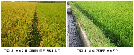 지연형은 생육 초기부터 등숙기까지 다양한 시기에 저온과 일조부족으로 생육이 지연되고 결국 추랭으로 인해 등숙 불량이 되어 수확량이 감소되는 냉해이다.