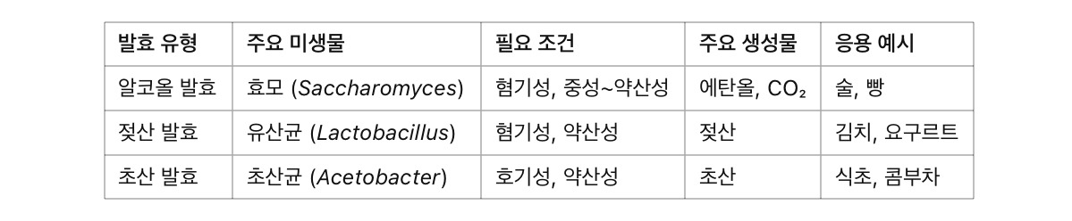 각 발효는 서로 연결될 수도 있는데, 예를 들어 알코올 발효로 만들어진 술이 초산 발효를 거쳐 식초가 될 수 있습니다.