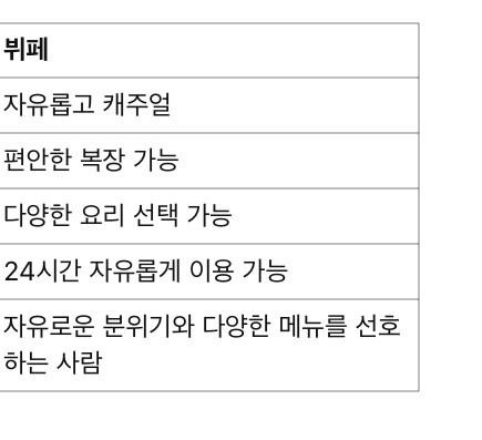 • 캐주얼한 분위기에서 24시간 운영되는 셀프서비스 뷔페.
