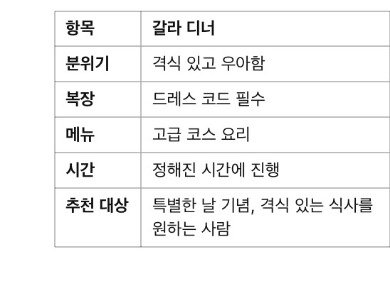 • 갈라 디너: 크루즈 여행 중 한 번은 경험해볼 가치가 있는 특별 이벤트. 특별한 날이나 로맨틱한 저녁에 추천.