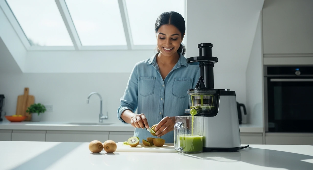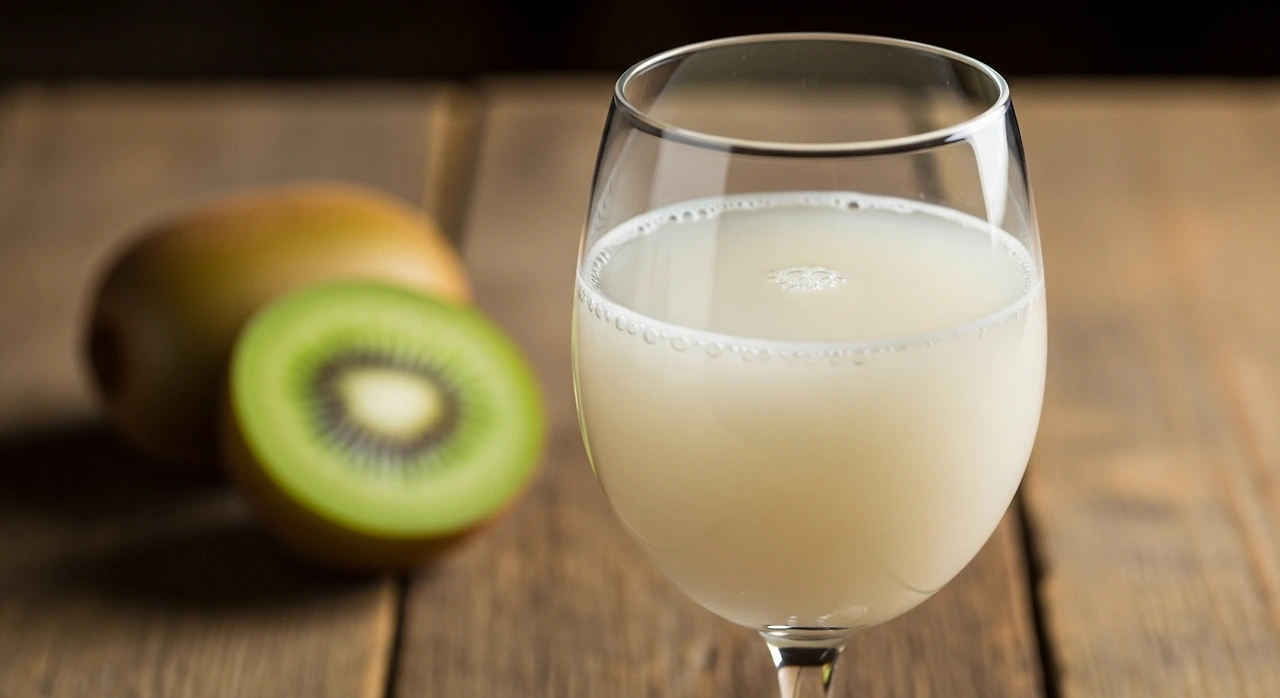 2. 면포나 원액기로 건더기를 걸러 맑은 키위 주스만 준비합니다.