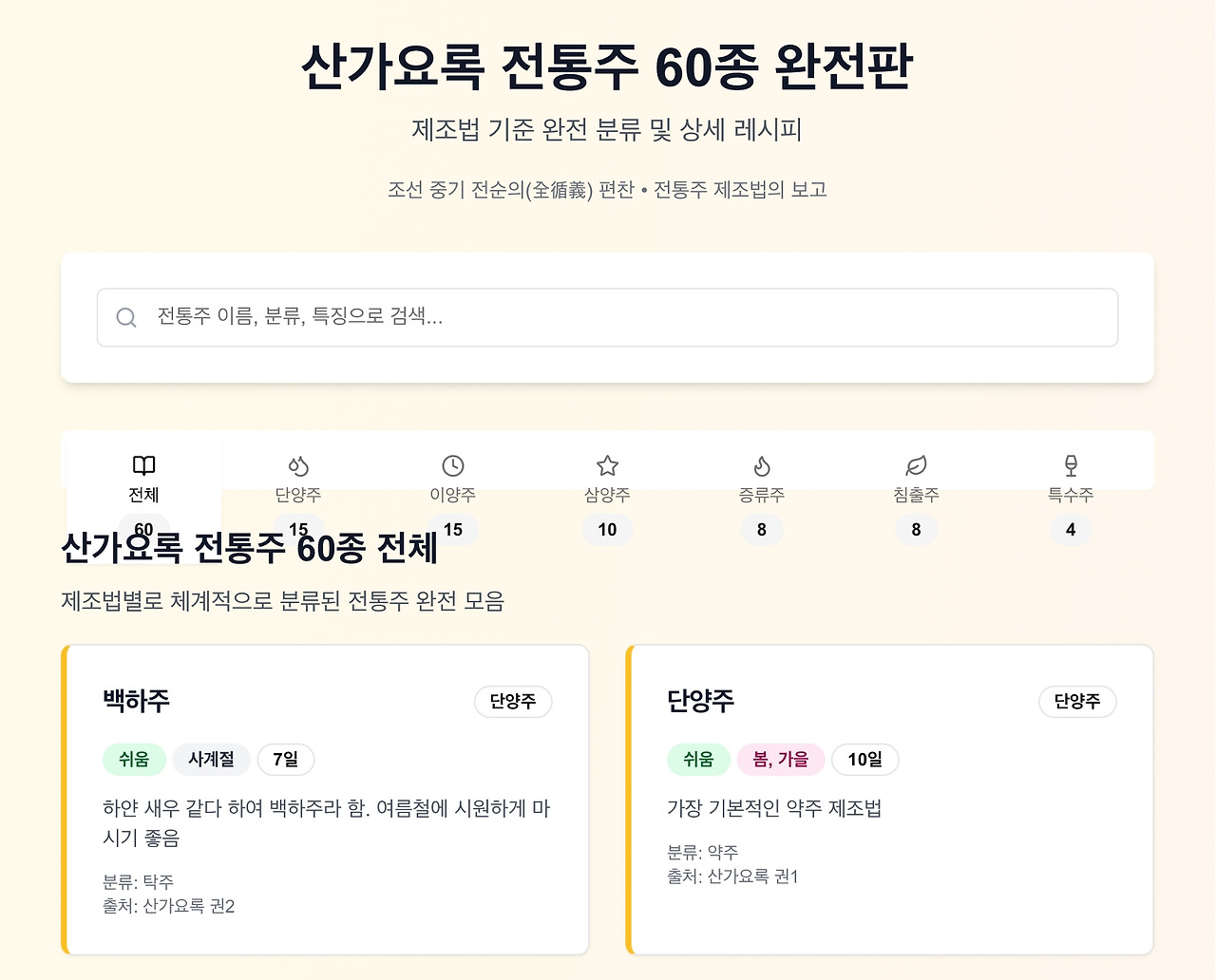 #전통주 #막걸리 #산가요록 #한국술 #백과앱 #양조장 #조선술