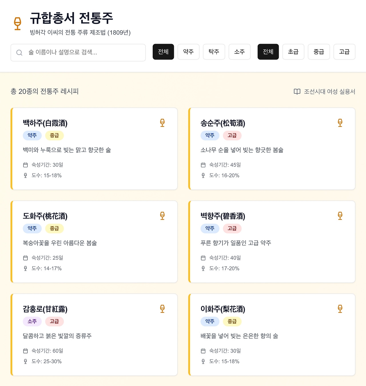 조선 여성의 전통주 레시피 20종, 한 손에!