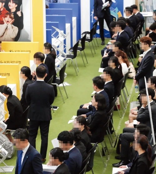 8월 27일 서울 중구 동대문디자인플라자(DDP)에서 열린 금융권 공동 채용 박람회에서 취업 준비생들이 모의 면접을 보기 위해 대기하고 있다. [원대연 동아일보 기자]