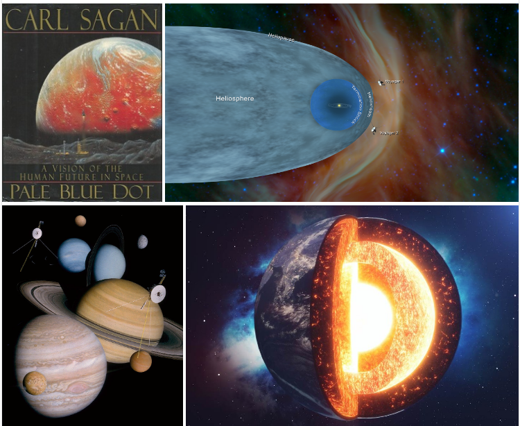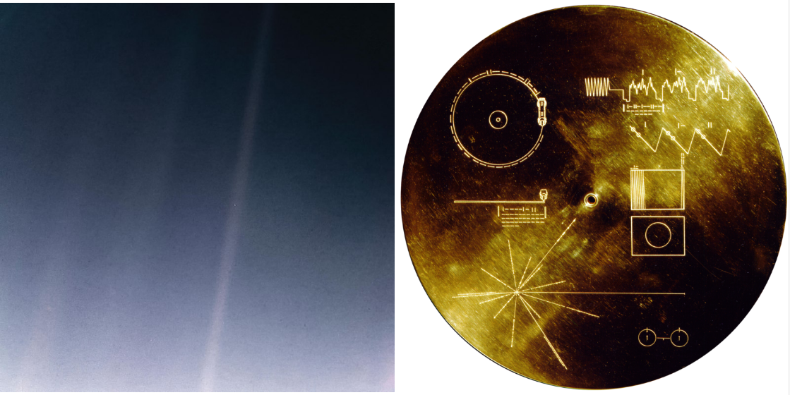 "창백한 푸른 점(Pale Blue Dot=지구)"은 1990년 2월 14일 지구에서 60억 킬로미터(얼마만큼의 먼 거리인지 감도 안 잡힘) 떨어진 곳에서 카메라에 반사된 햇빛의 띠사이에서 작은 점으로 나타난다.