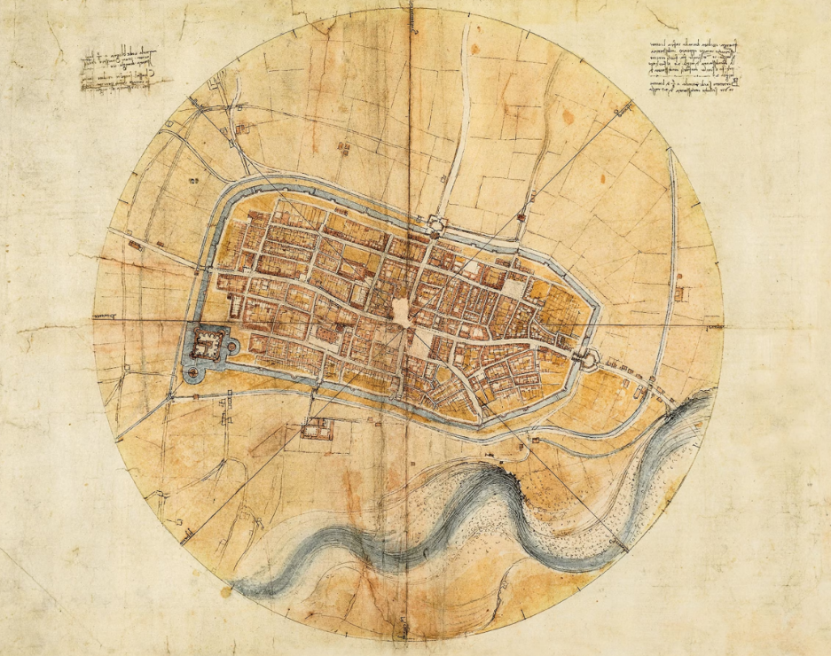 다빈치의 손끝에서 탄생하고 있는 것은 단순한 그림이 아니었다. 그것은 인류 역사상 최초의 '평면 부감 지도'였다.
