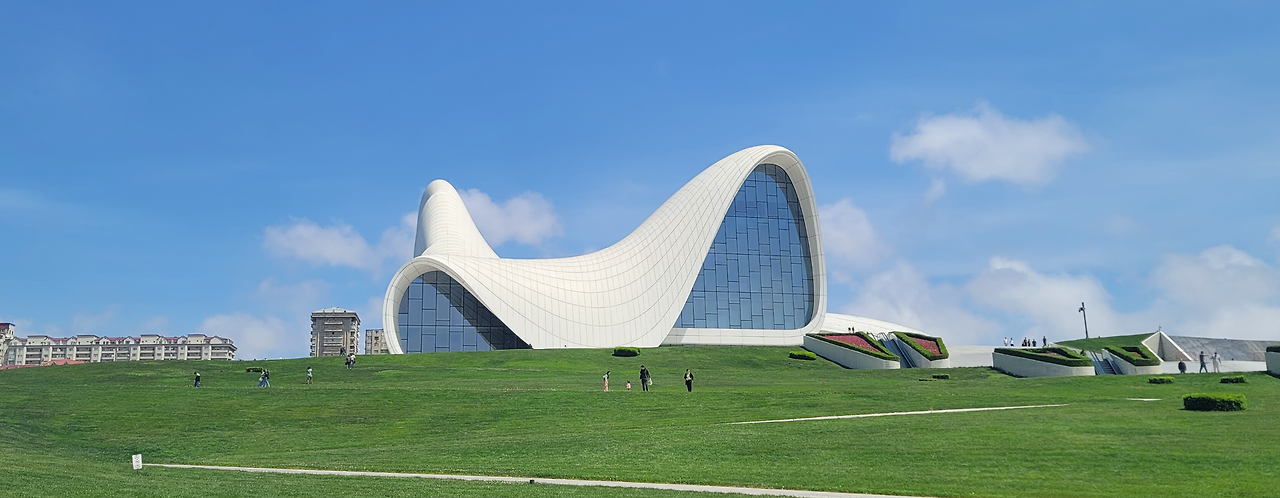 "아 오늘 숙소 옮기기 전에 근처에 바쿠 사인과 알리예프 센터에서 사진 찍고 오려구요