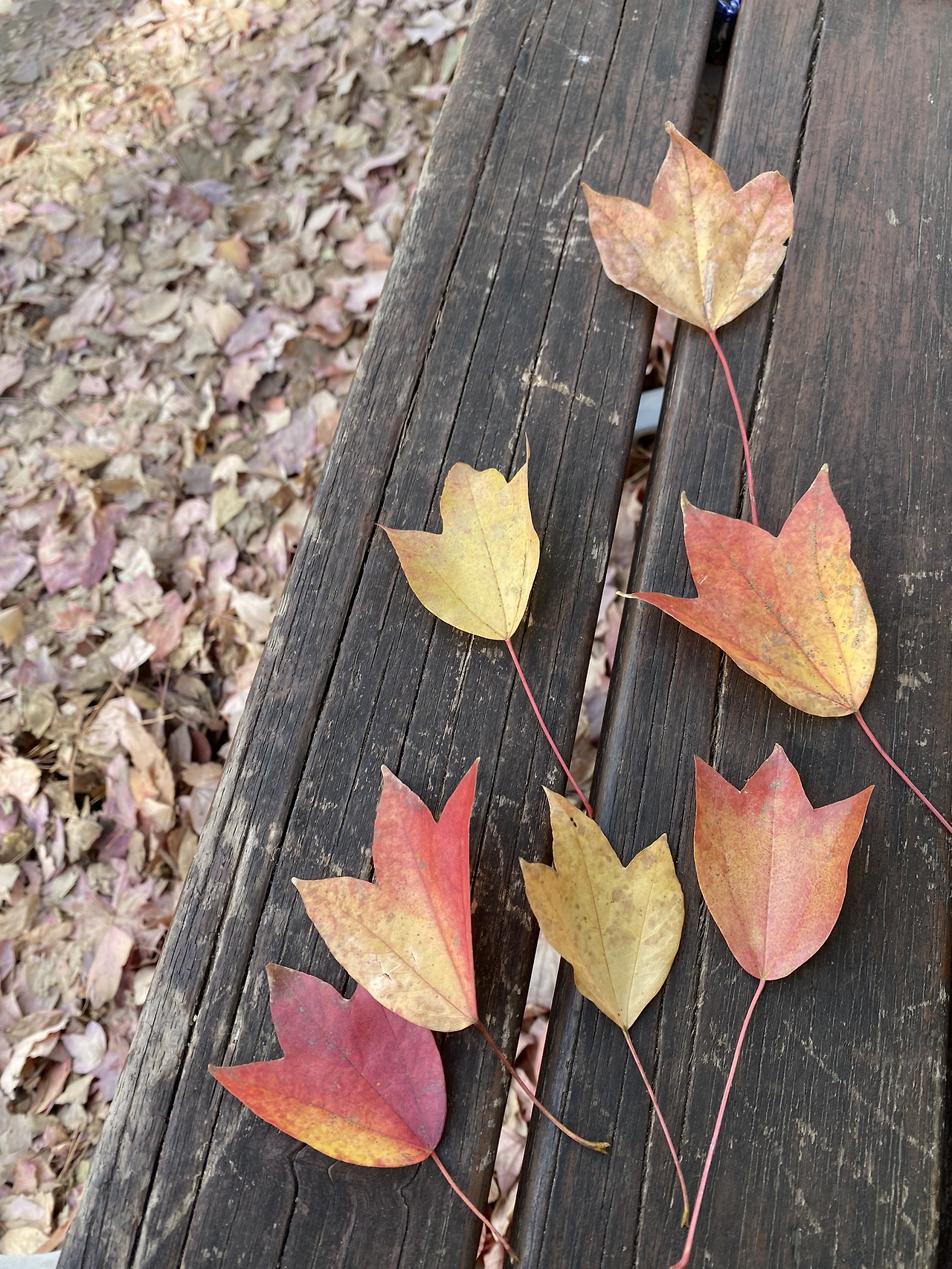 길가에 떨어진 나뭇잎이 하도 예뻐서 줍다 보니 한주먹이 되었다.