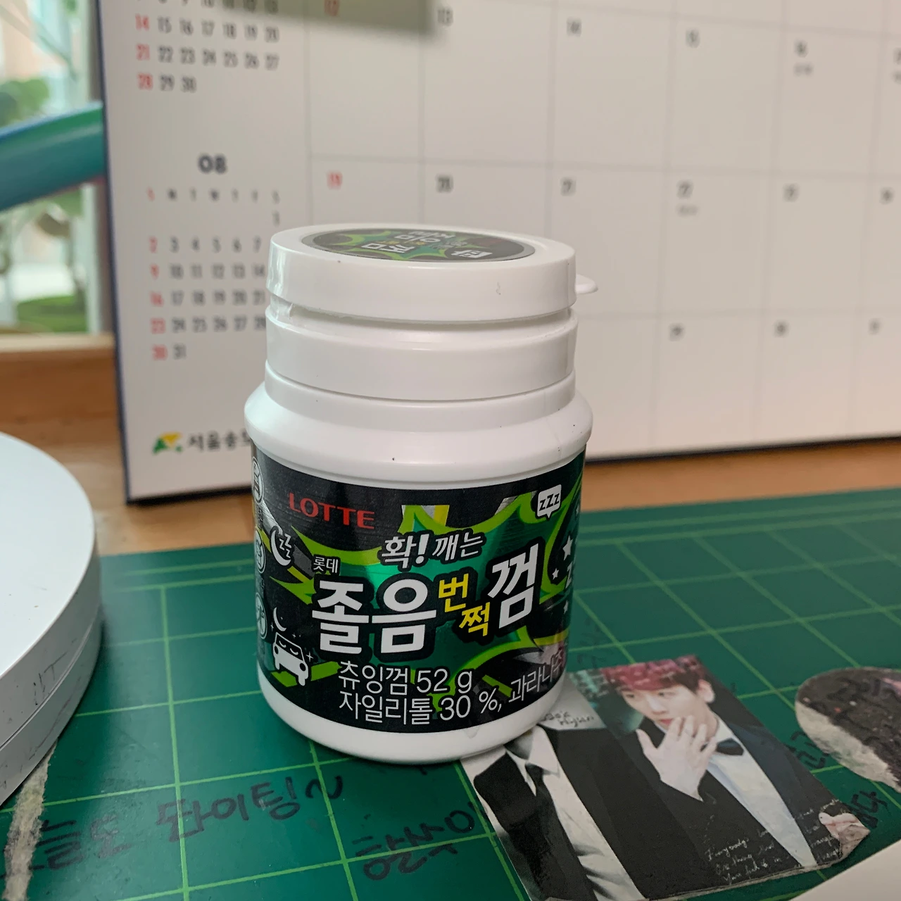 그리고 오늘 아침 직보(학원에서 하는 시험 직전 보강)를 간 딸의 책상을 정리해 주다 그 껌을 봤다. 졸음 번쩍 껌.