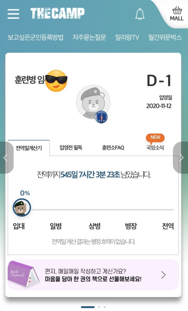 아들이 건네주는 핸드폰을 받아 들고 앱에 접속했다. 아직 입대 전이라 카페도 개설되지 않은 상태였다. 그런데 이 앱 입대도 하기 전인데 전역일은 또 기가 막히게 알려준다.