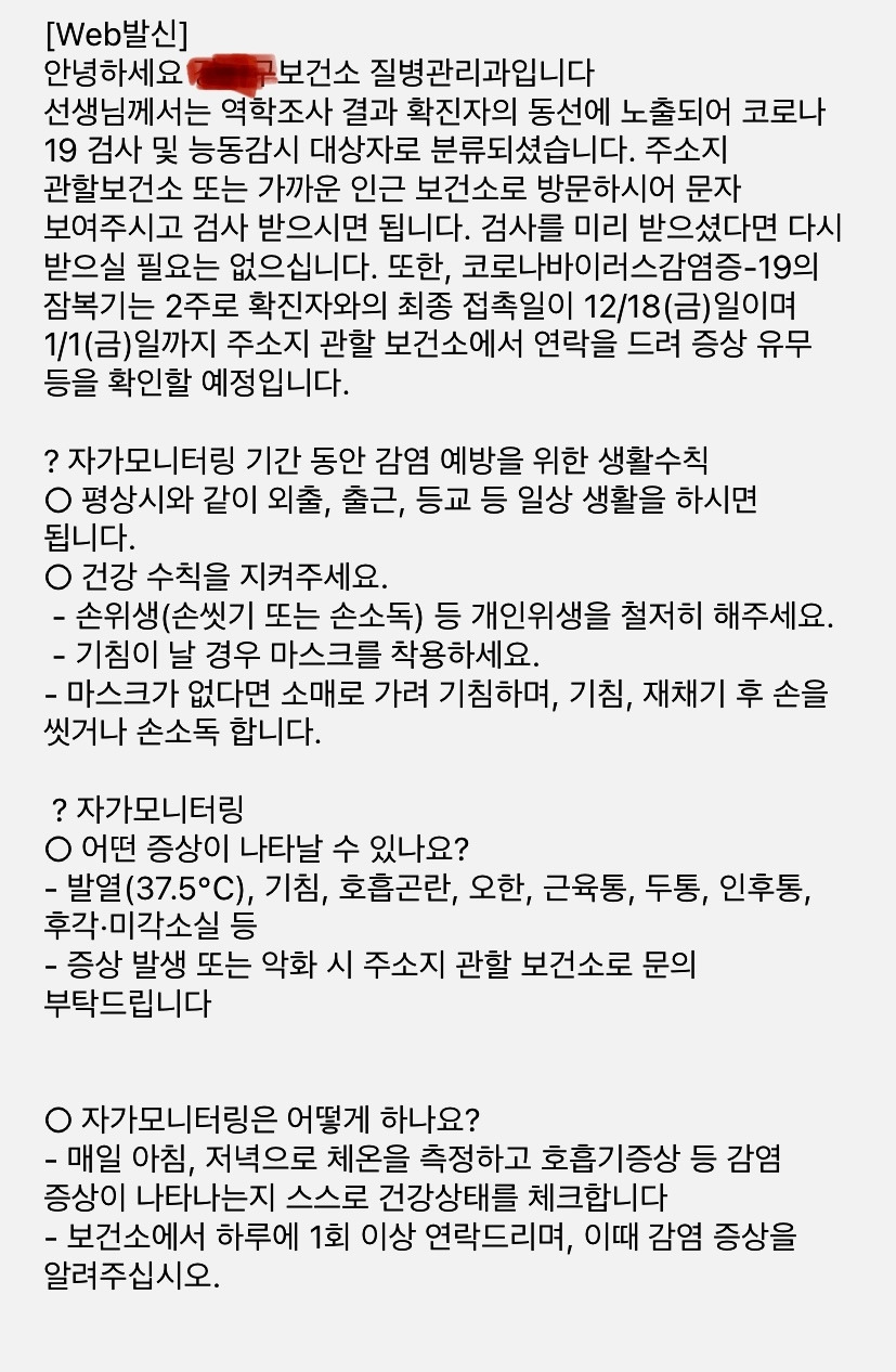 “그분은 밀접 접촉자한테 검사받으라고 가는 문자 받았대?”