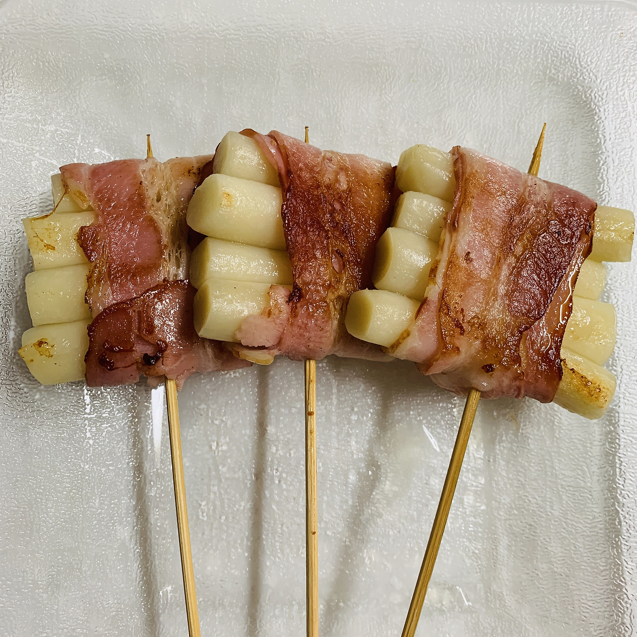 딸의 학원 시간에 맞춰 오늘의 두 번째 식사를 준비했다. 딸 역시 학원 때문에 밥을 먹는 것이지 배가 고픈 것은 아니었다. 지금 먹지 않으면 학원에서 돌아올 10시 반까지 배가 너무 고프기 때문에 뭐라도 먹어야 한다. 어제 먹고 싶다던 베이컨 떡말이를 만들었다. 아이들이 먹고 싶다는 음식을 이야기해주면 고맙다. 그 음식이 만들기 쉬우면 더욱 고맙다. 근처 식재료 마트에서 사다 얼려둔 밀떡을 끓는 물에 한 번 삶은 후 반으로 잘라 4개씩 베이컨으로 감싸 예전 친정 엄마가 장사를 그만두시며 주셨던 꼬치에 꽂았다. 에어플라이어를 이용할까 하다 너무 바삭하게 되는 것 같아 그냥 프라이팬에 구웠다.