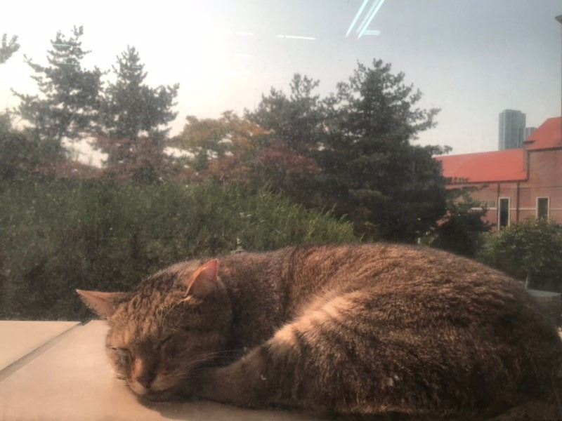 아까 도서관에 갔다고 말했는데 저는 동네 도서관에 가는 걸 좋아해요. 편안한 카페도 있지만 도서관이야말로 혼자면서 함께 있는 곳, 사적이면서 공적인 공간이 아닌가 싶어서요. 차로 10분 정도 걸리는 아담한 시립도서관으로 30년 넘은 외관이 세월의 흔적을 고스란히 드러내고 있는 곳이에요. 도서관 정원은 익숙한 손길로 단정하게 잘 손질되어 있고 길고양이들도 편안하게 느껴지는지 자주 나타나요. 입구에는 고양이들을 위한 음식이 항상 놓여있죠. 도서관이 지니는 마음이랄까요. 고양이 한 마리 내치지 않고 품어주는 너른 마음을 느껴요.
