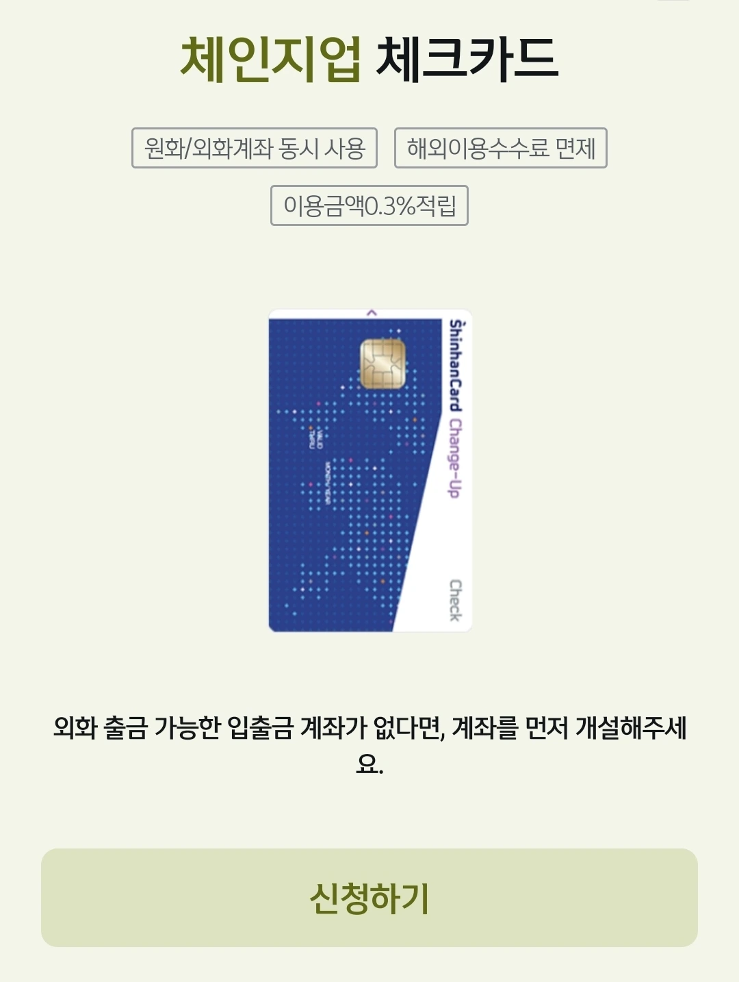 신한 체인지업 쳬크카드(sol 뱅크 홈피)