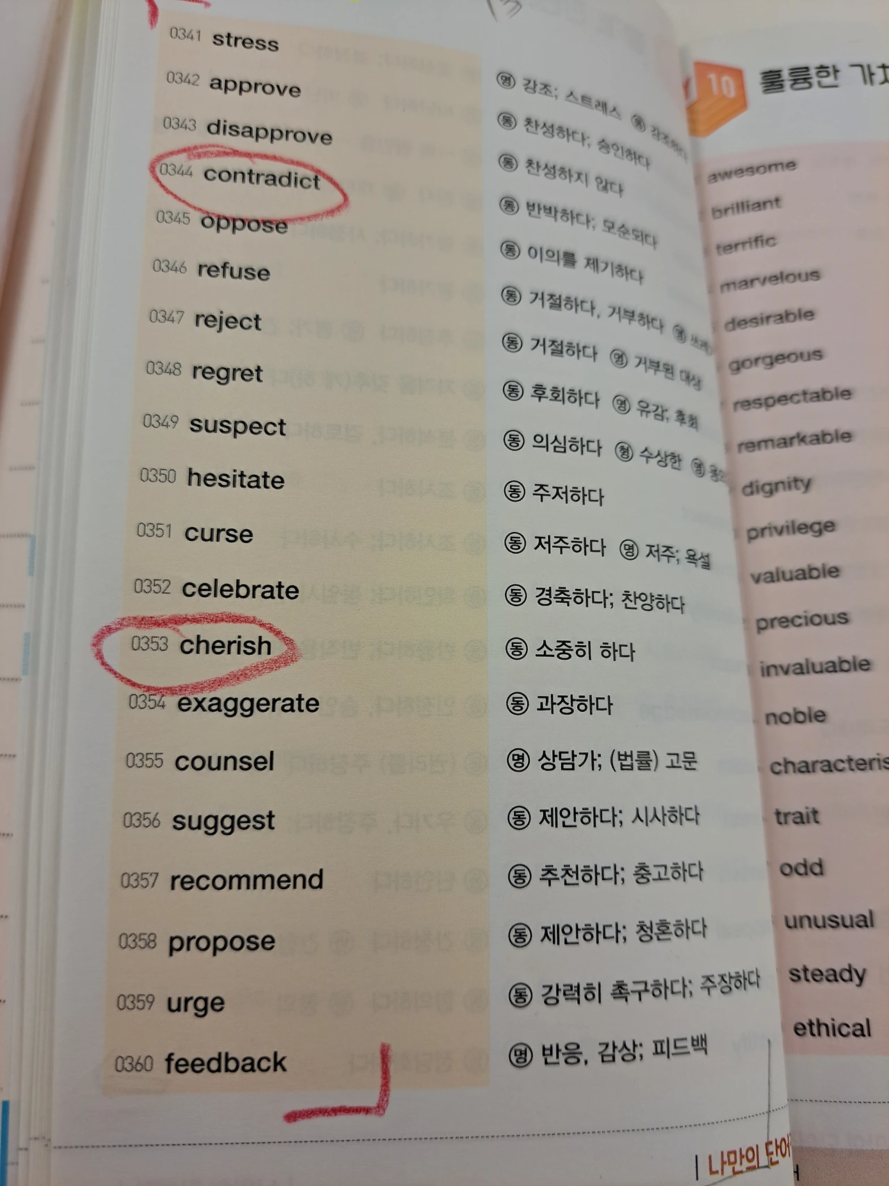 내 아이가 보는 영단어장에서 혹시 모르는 단어가 있나 물어봤다.