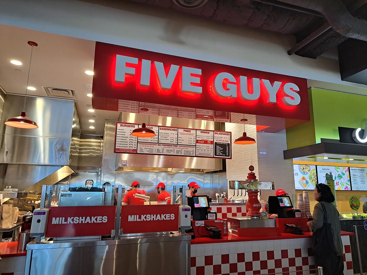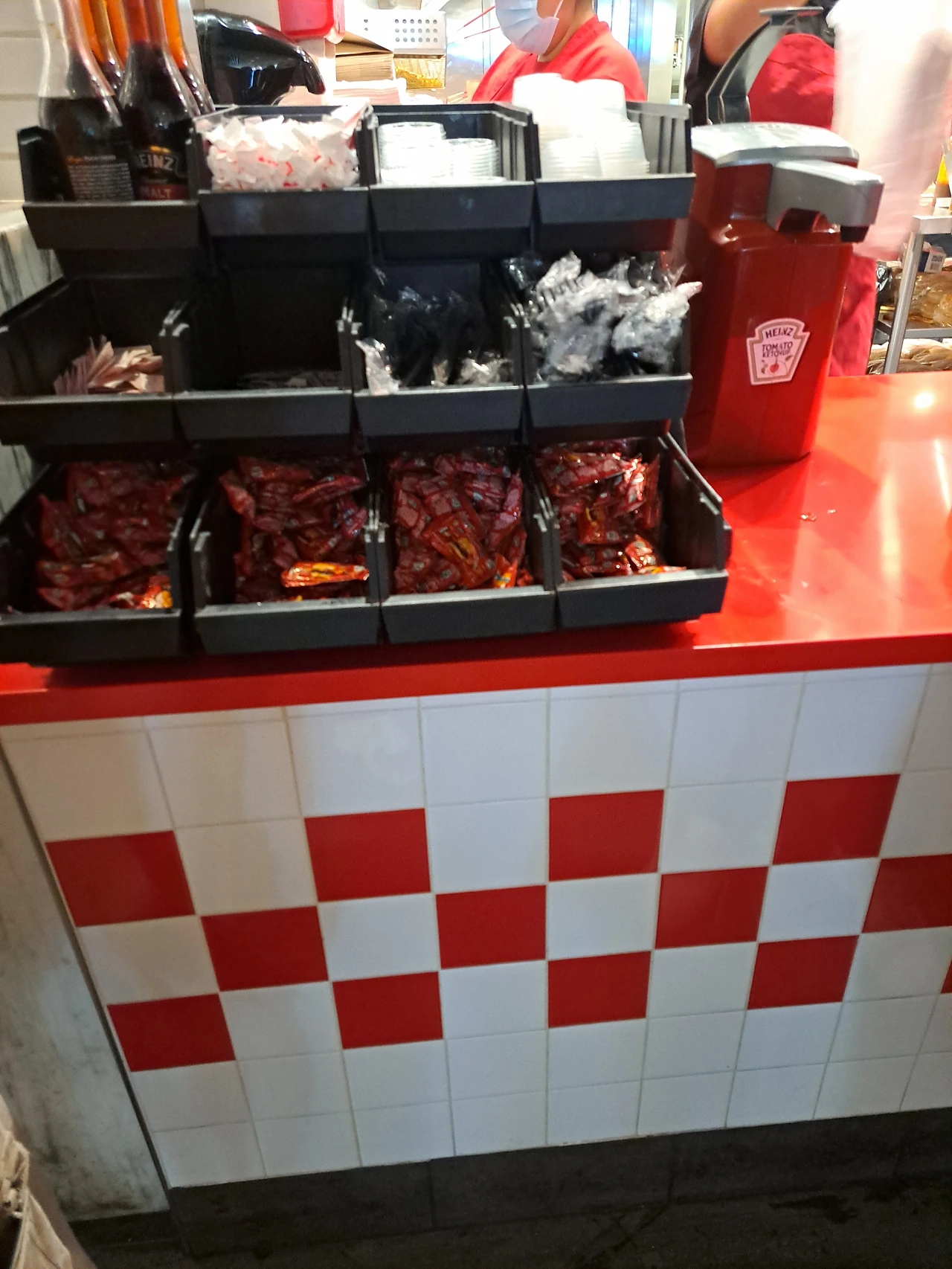 (공항점 인 앤 아웃 햄버거 매장을 비롯한 햄버거 집들은 과도할 정도로 산처럼 쌓은 각종 소스를 셀프로 가져가도록 제공한다.