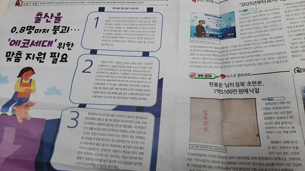 신문이 아이 아침상에 자리 잡기까지 시간은 꽤 걸렸다.