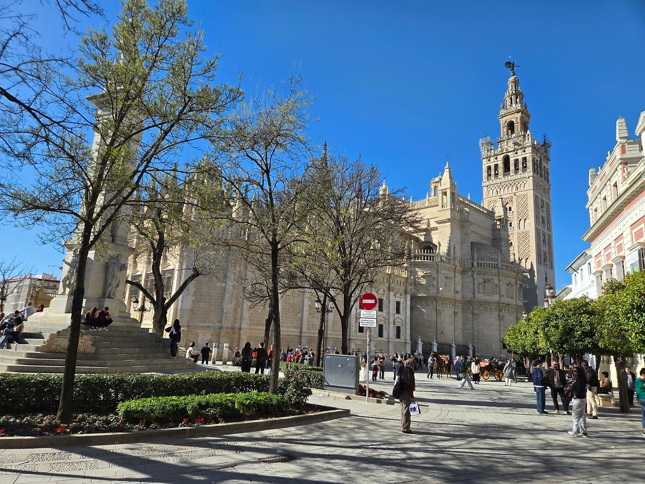 세비야 대성당 앞에 서니, 시간의 무게가 몸으로 느껴진다. 세계에서 가장 큰 고딕 성당 중 하나라는 설명보다 먼저, 인간의 신앙과 열망이 얼마나 높이 쌓일 수 있는지를 보여주는 건축물이라는 생각이 들었다. 그 옆에 우뚝 서 있는 히랄다 탑은 과거 이슬람 모스크의 미나렛으로 사용되었고 지금은 성당의 종탑이 되어 조용히 자리를 지키고 있다.