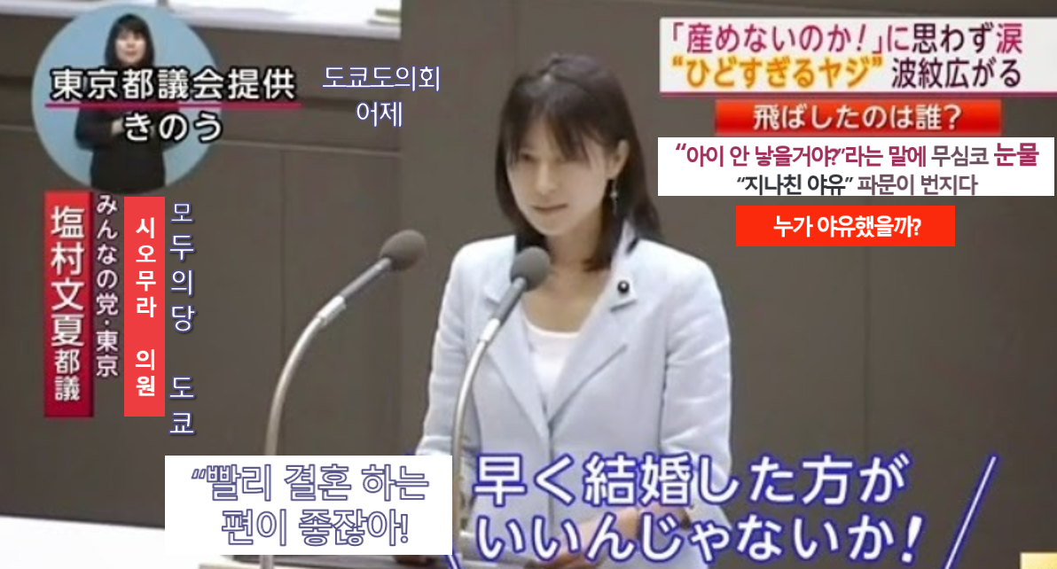 일본 최대의 자치단체 도쿄도 본회의 중간에. 그것도 질의자로 나선 여성의원이 이런 말을 들은 겁니다.