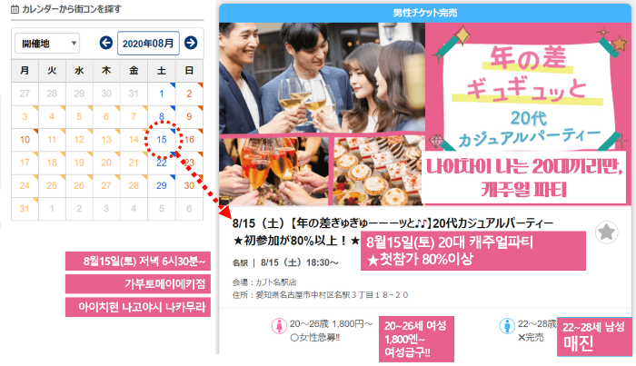 일본에서 남녀 간의 단체미팅은 세대와 나이를 불문하고 꾸준히 인기 있는 편입니다. 작게는 열댓 명에서 크게는 수백 명을 한자리에 모아서 대규모 미팅을 주선하는 업체들이 있죠.
